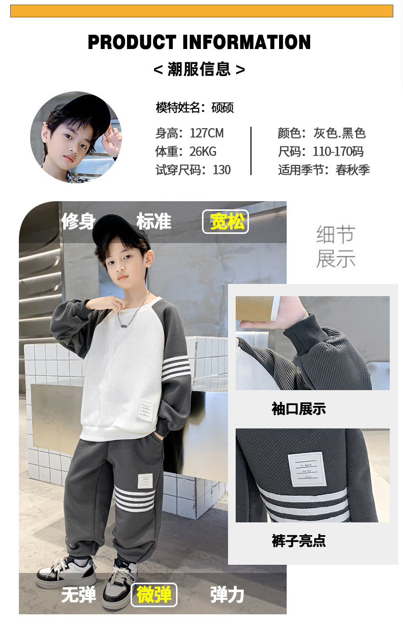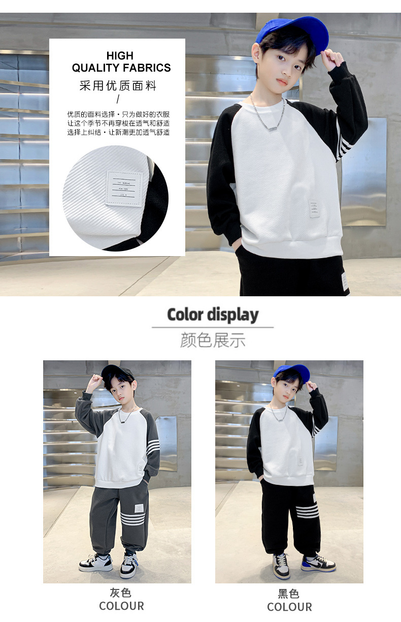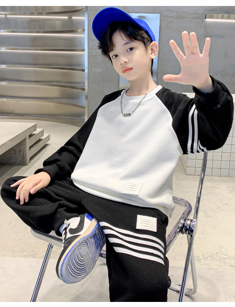 男童春款套装纯棉2023春季新款中大童男孩卫衣卫裤两件套拼色条纹