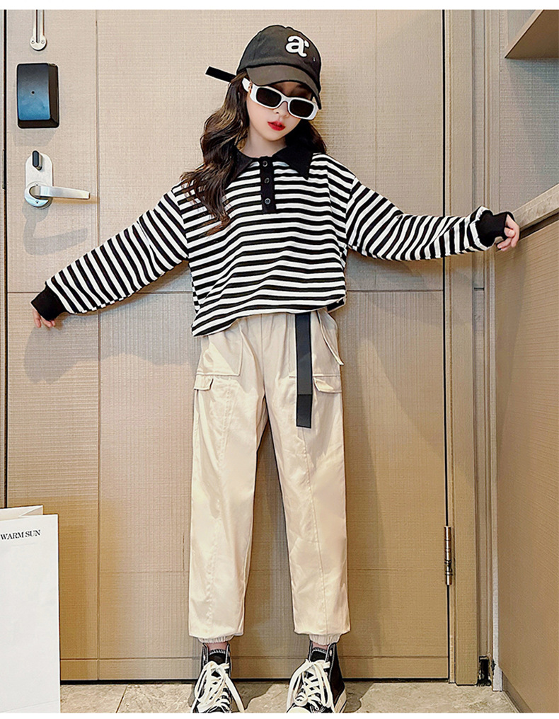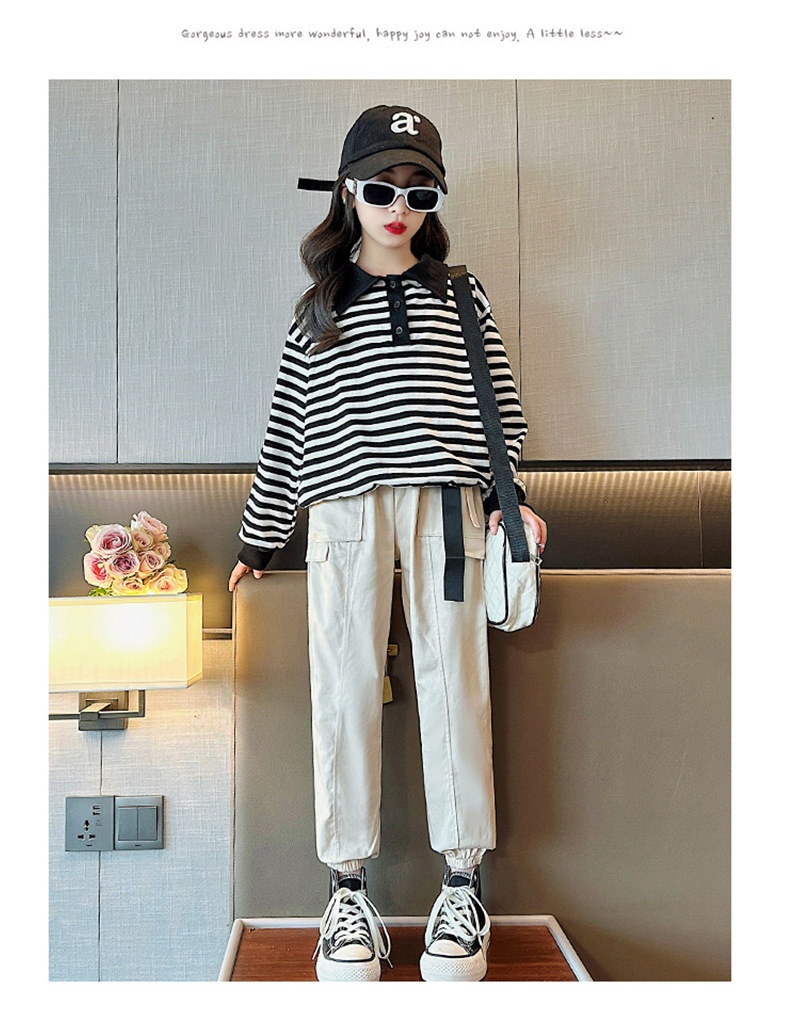 女童春款套装纯棉2023春季新款中大童女孩polo衫工装裤两件套潮款
