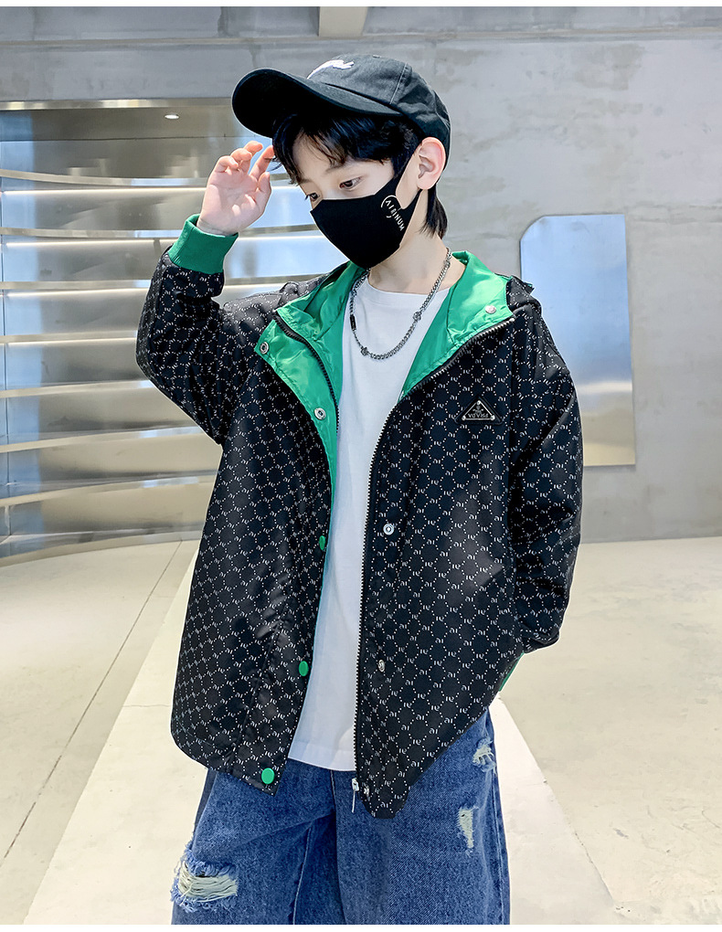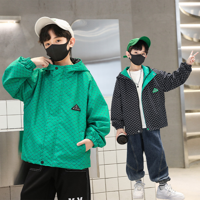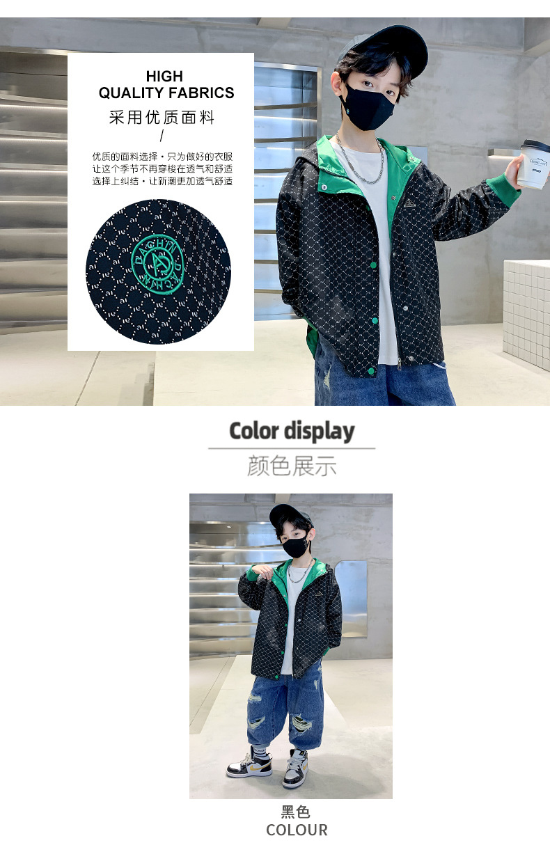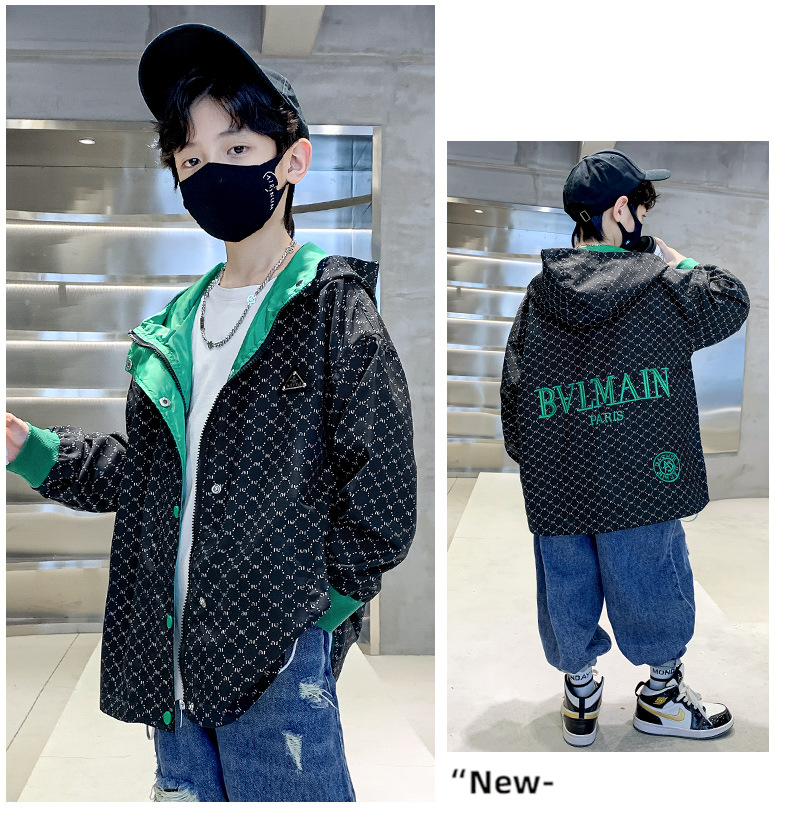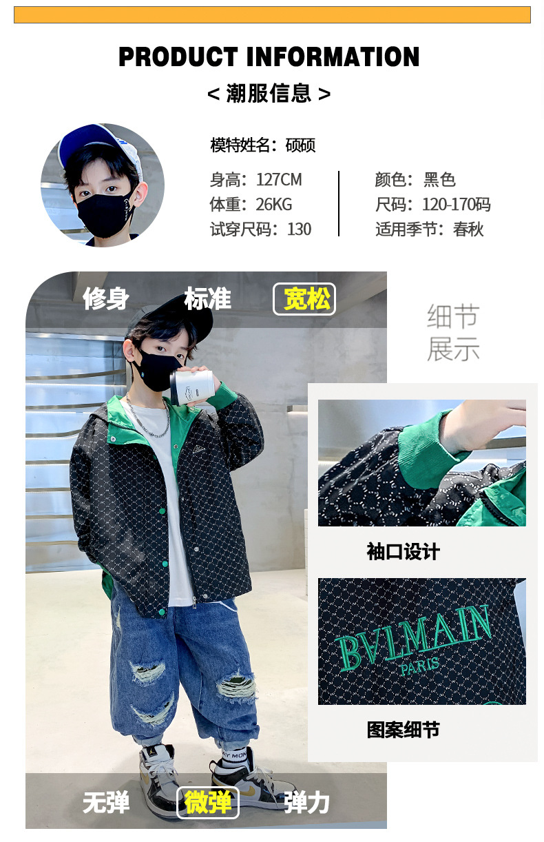 儿童春秋棒球服外套刺绣连帽2023秋季新款中大童男孩夹克潮款炸街