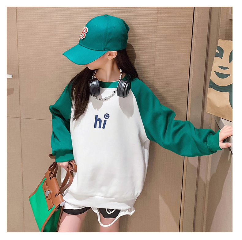 女童春款拼色卫衣纯棉2023年春季新款中大童女孩潮款卫衣时尚炸街
