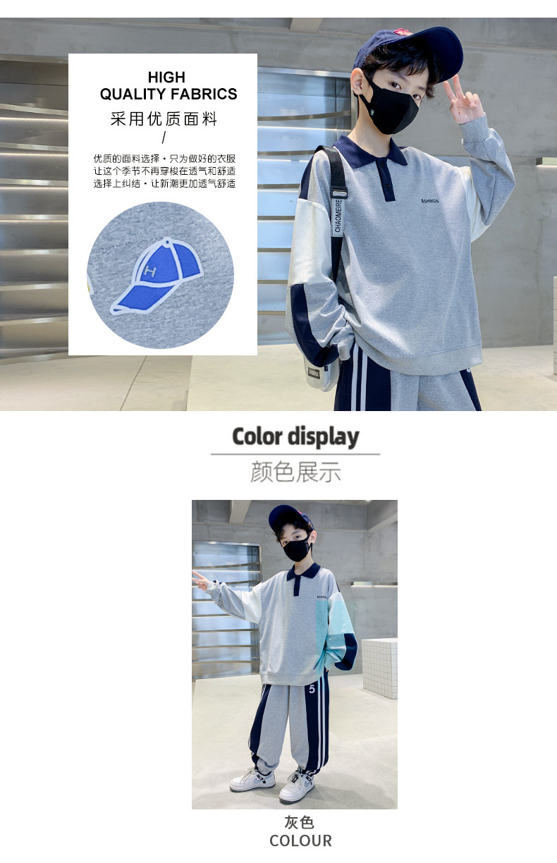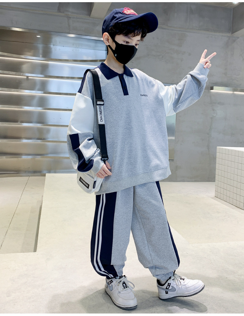 男童春款套装纯棉2023春季新款中大童男孩卫衣卫裤两件套polo潮款