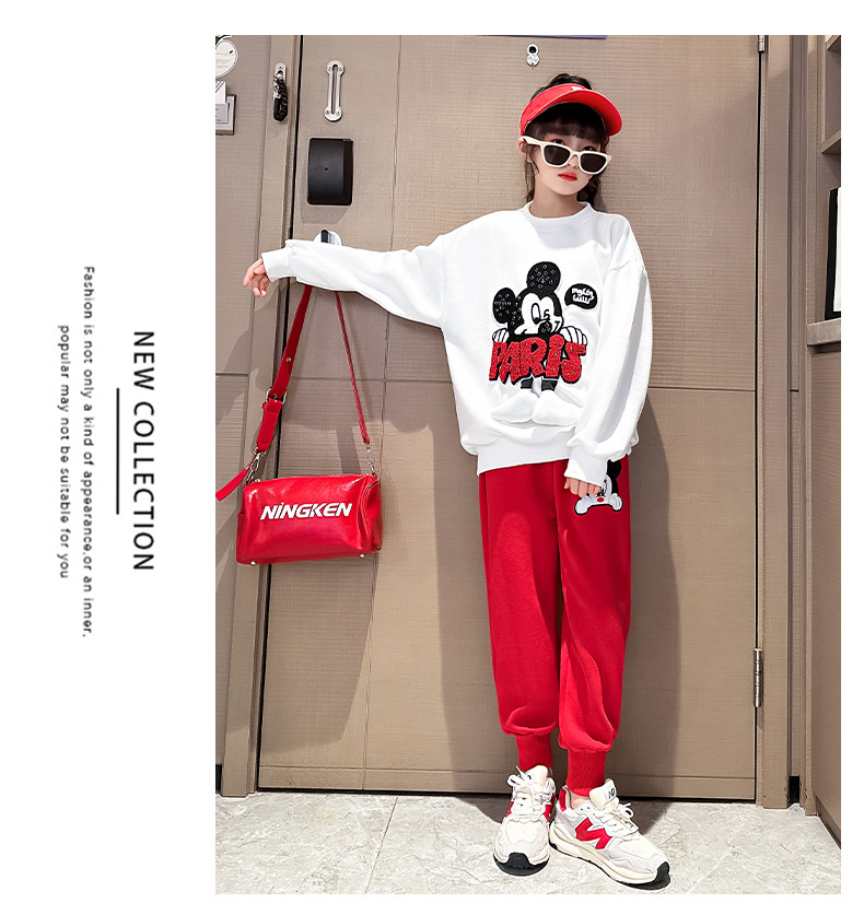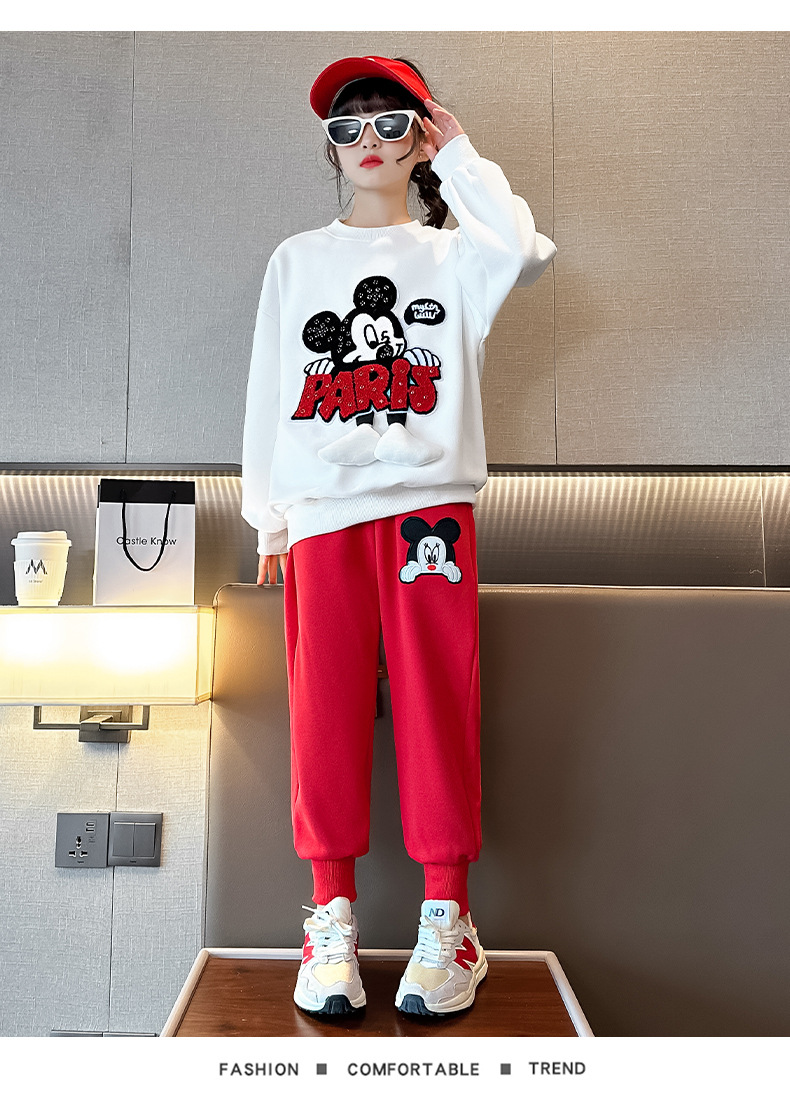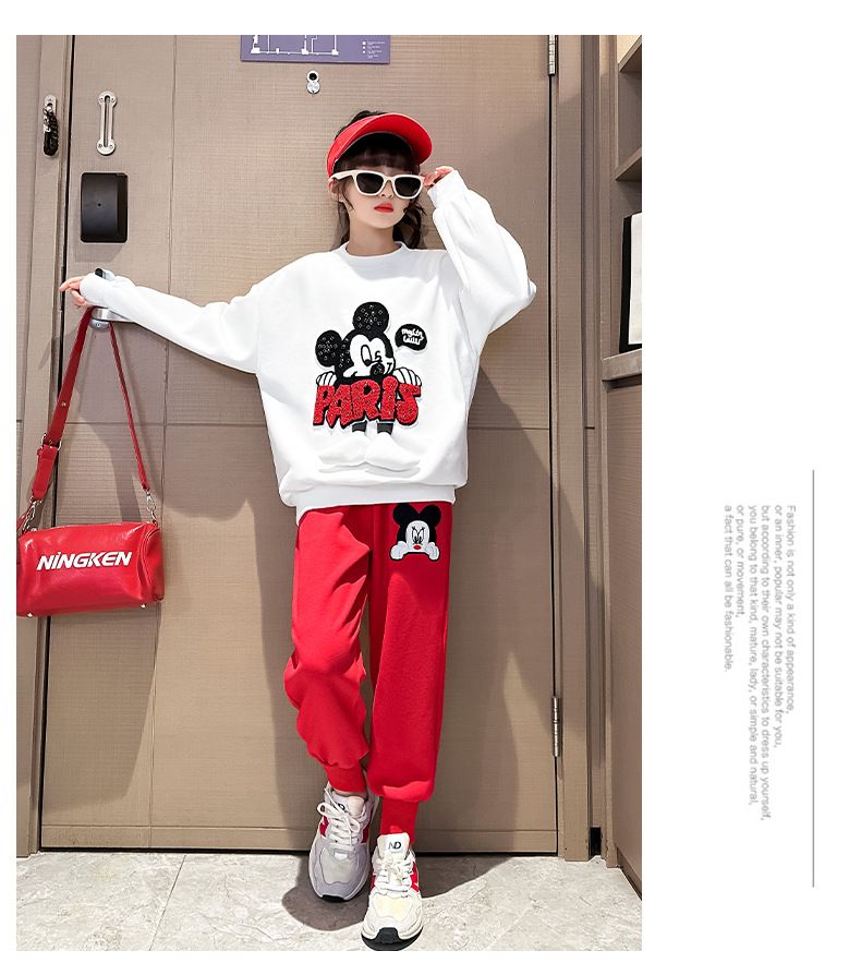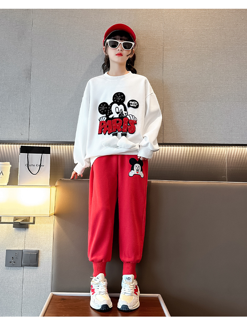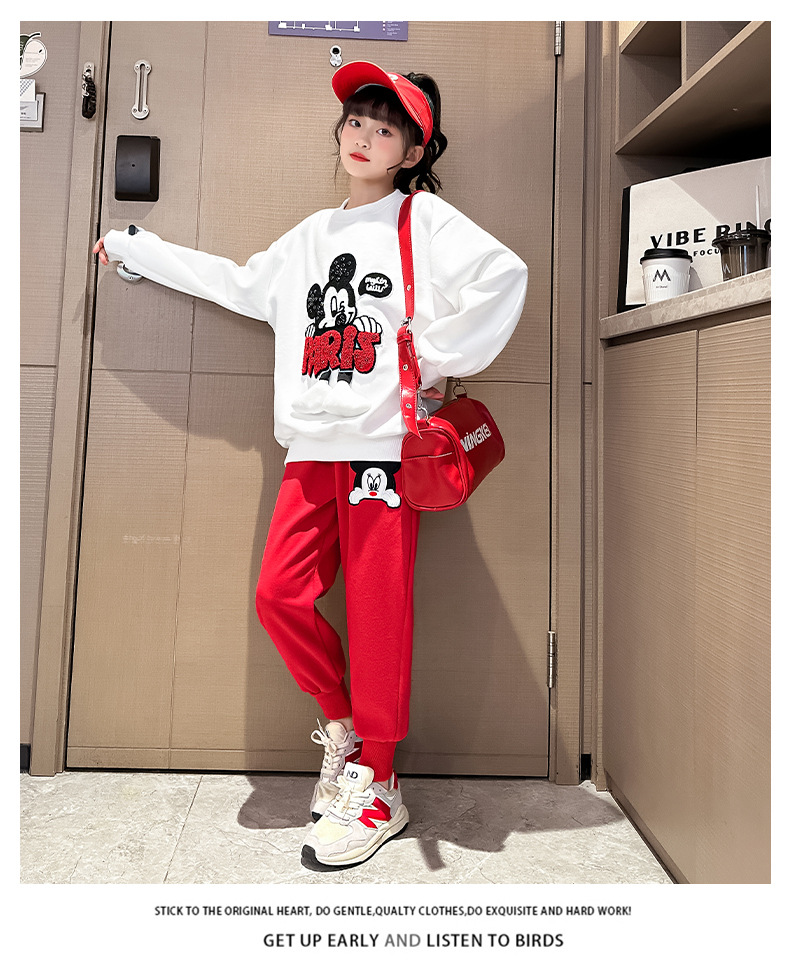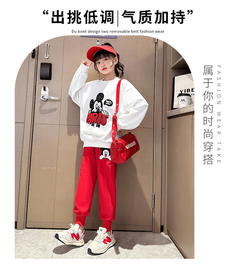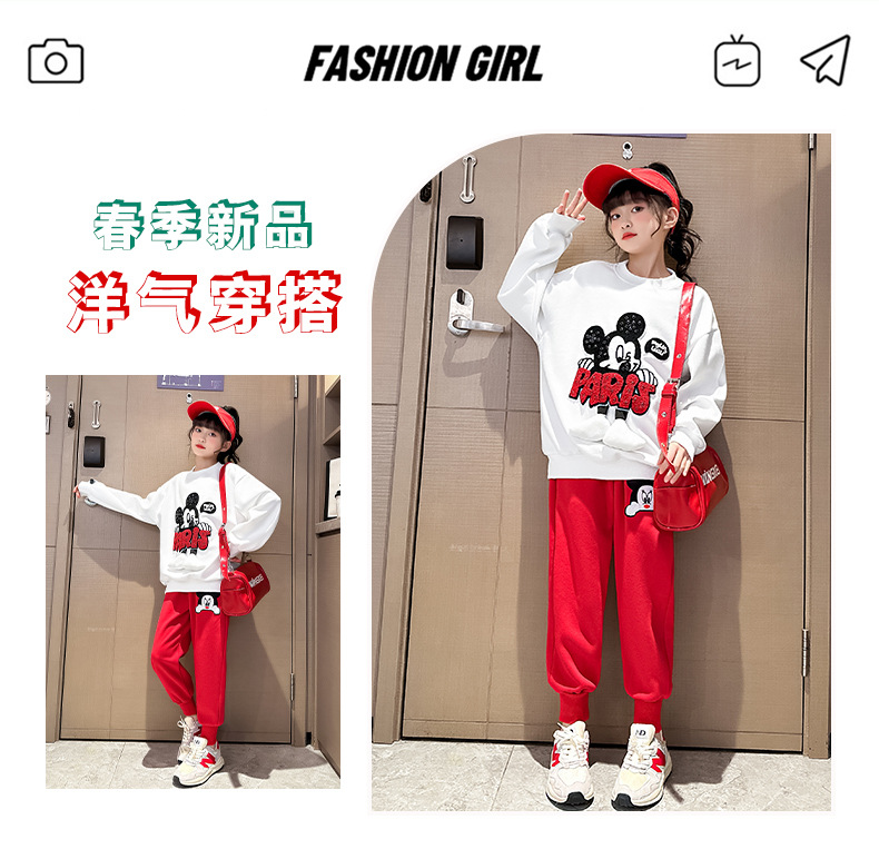 女童春款套装纯棉2023春季新款中大童女孩卫衣卫裤两件套卡通米奇