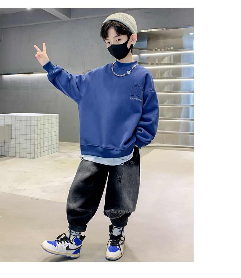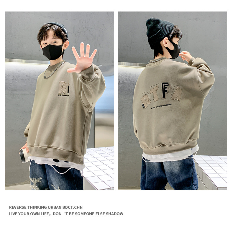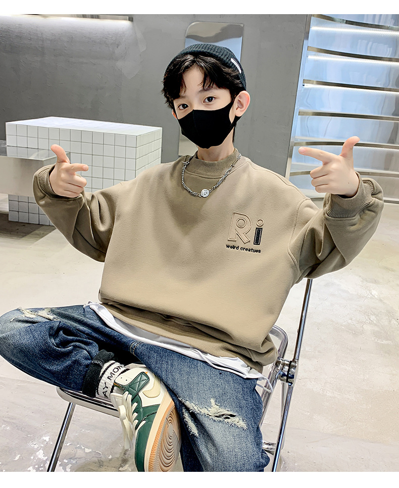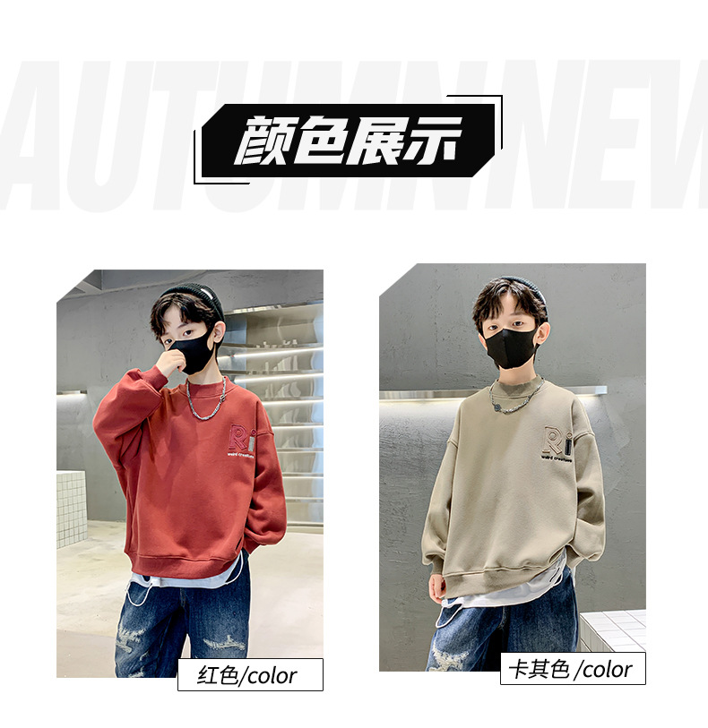 男童春款卫衣纯棉刺绣2023年春季新款中大童男孩潮款卫衣时尚炸街