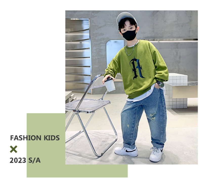 男童春款套装纯棉2023春季新款中大童男孩纯棉卫衣牛仔裤套装潮款