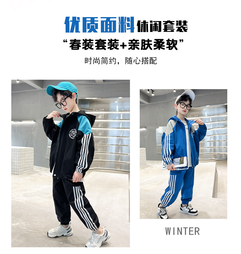 男童春款套装棉2023春季新款中大童男孩卫衣卫裤两件套卡通潮炸街