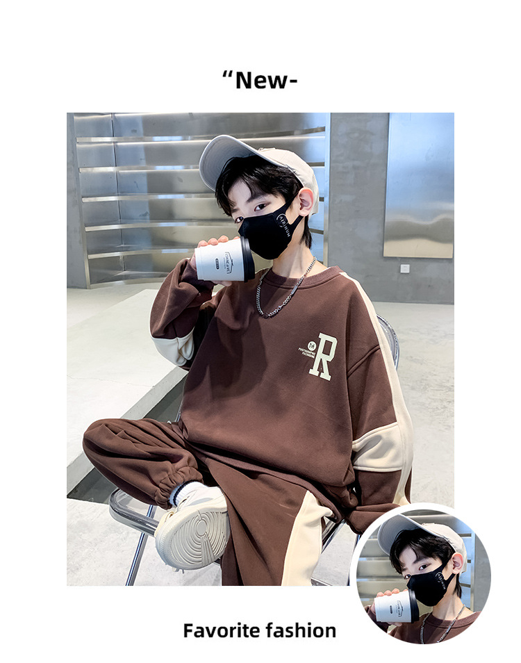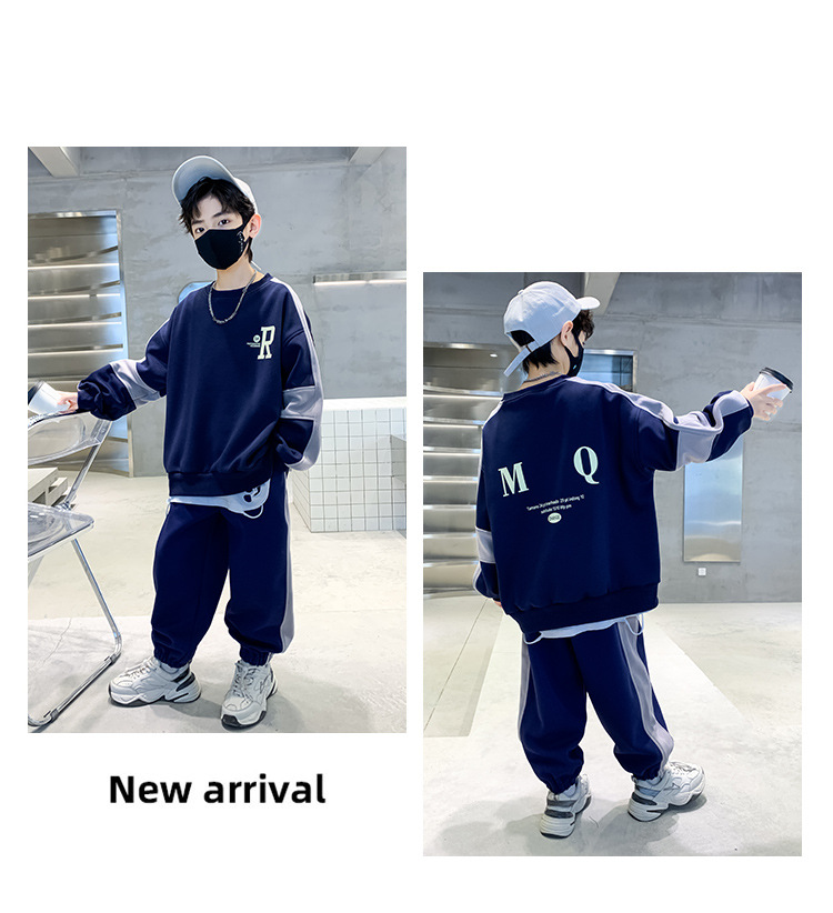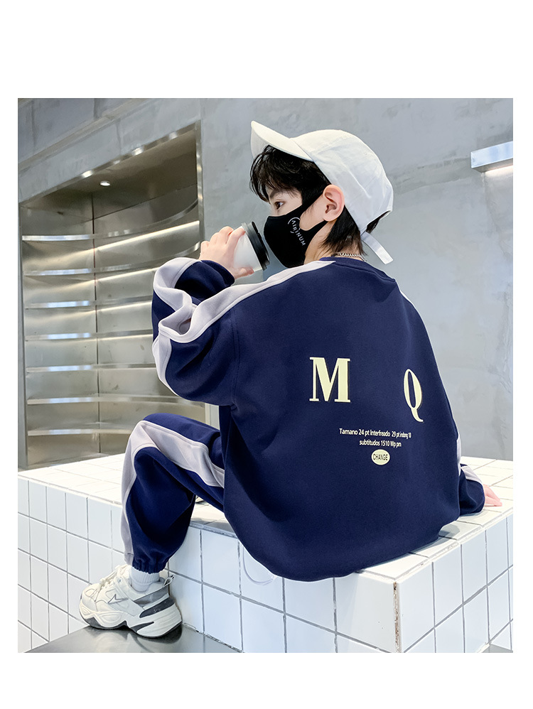 男童春款套装纯棉2023春季新款中大童男孩卫衣卫裤两件套RMQ潮款