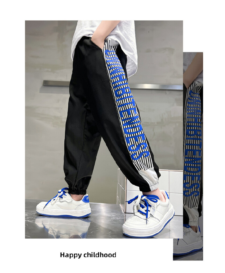 男童薄款冰丝卫裤清凉透气2023夏季新款男孩防蚊裤字母拼色潮款