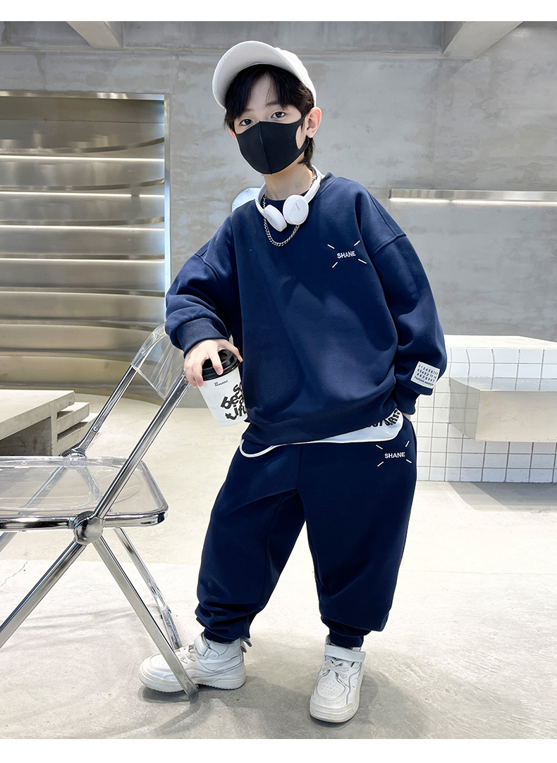 男童春款套装纯棉2023春季新款中大童男孩卫衣卫裤两件套刺绣潮款