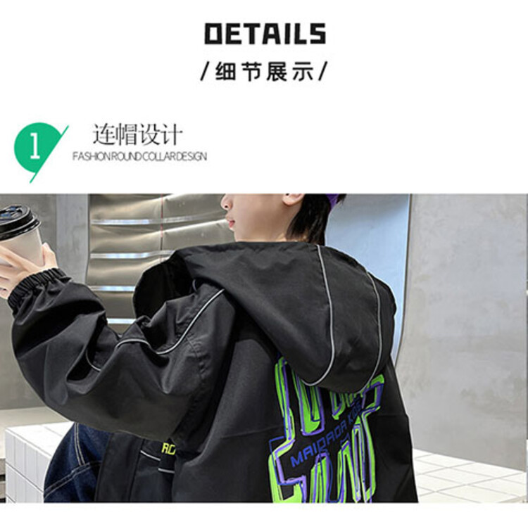 韩版时尚男童中大童风衣外套后背字母印花儿童外套男童外套潮批发