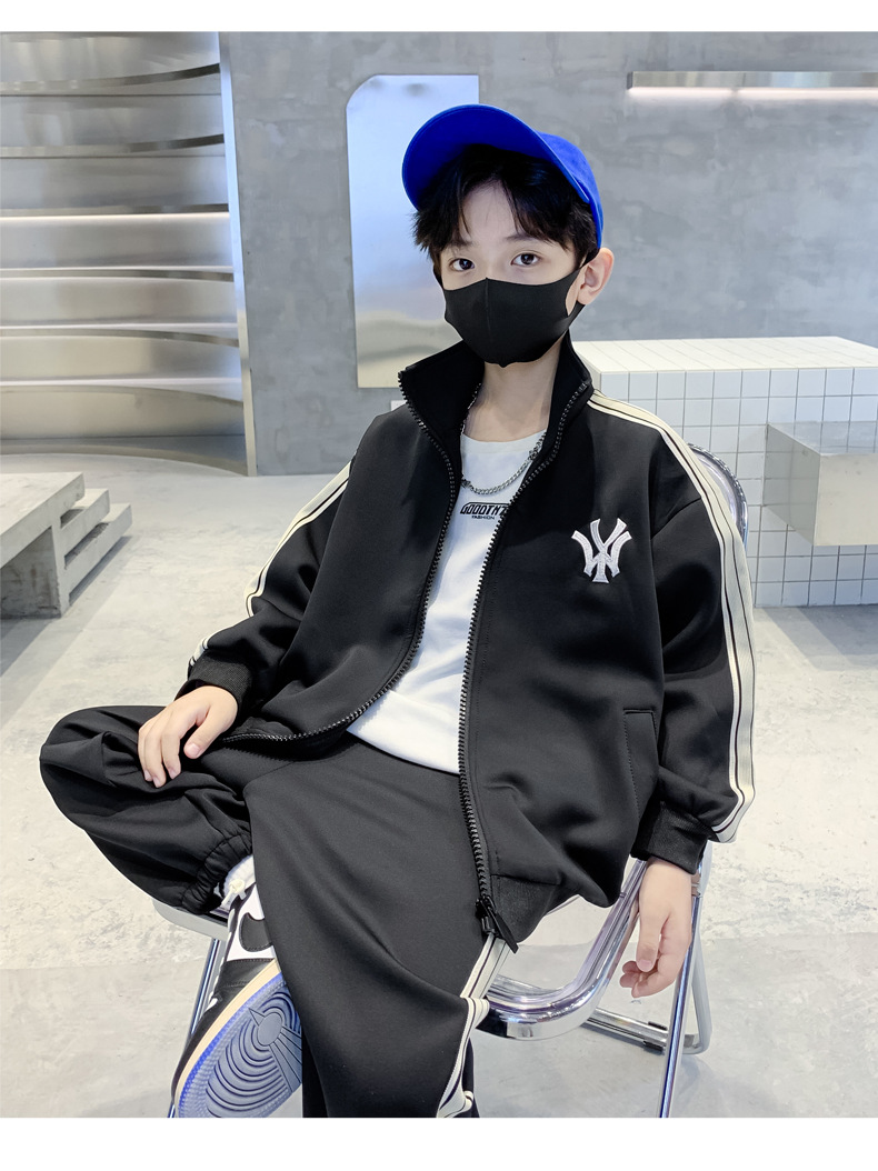 男童春款套装纯棉2023春季新款中大童男孩卫衣卫裤两件套刺绣炸街