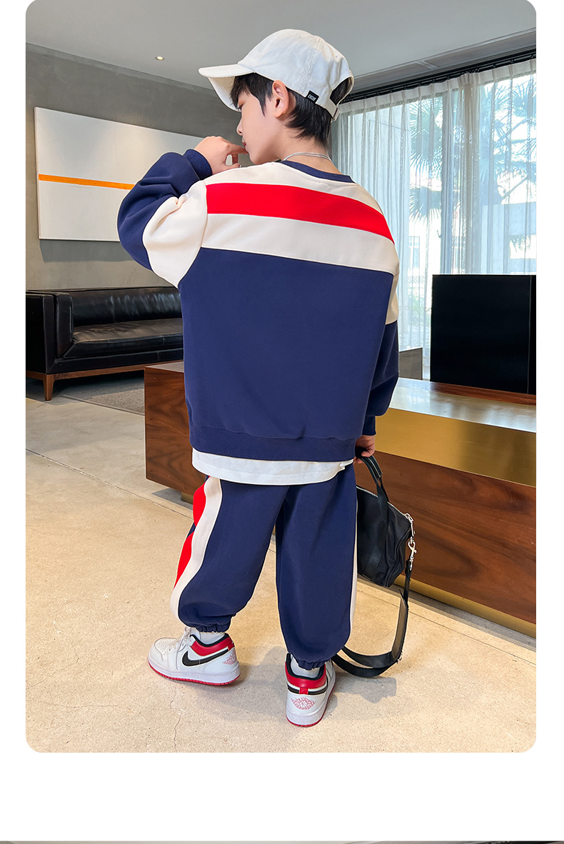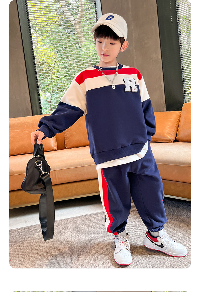 男童春款套装纯棉2023春季新款中大童卫衣卫裤两件套拼色潮款炸街