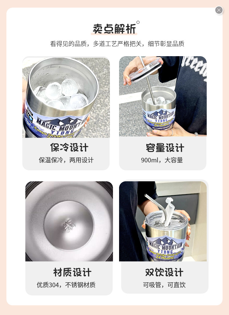 冰霸杯食品级304不锈钢保冰杯制冷保冷两用夏季咖啡杯车载杯便携