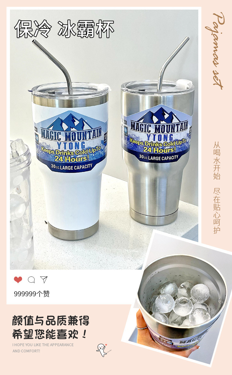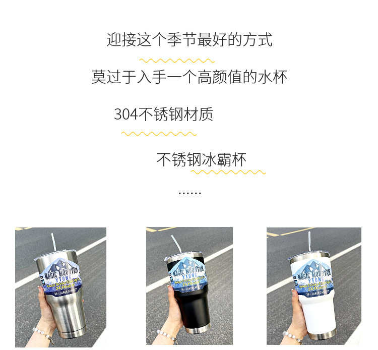 冰霸杯304不锈钢保冰保温吸管杯咖啡杯男士车载冰沙杯户外汽车杯