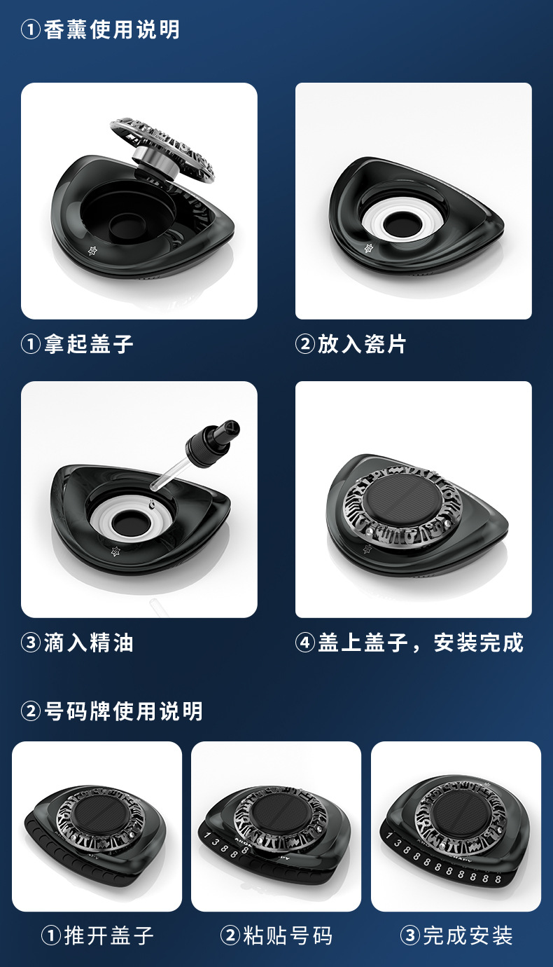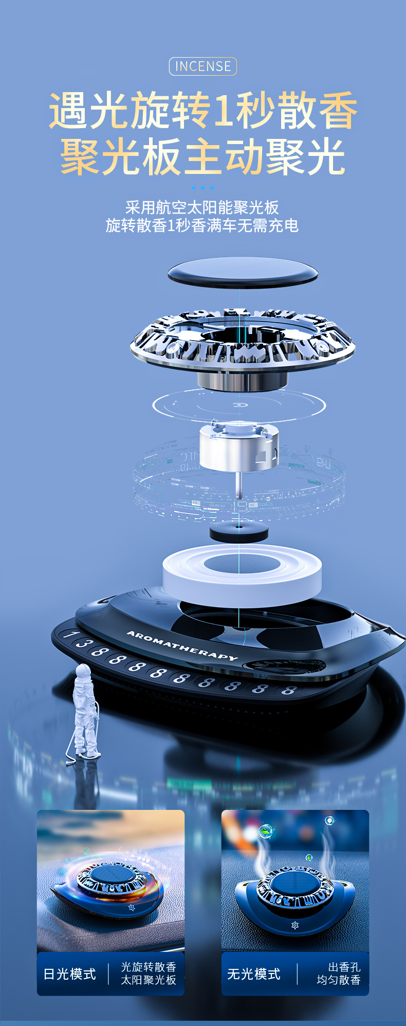 太阳能光感车载香水车内祛除异味汽车香薰 临时停车挪车号码牌
