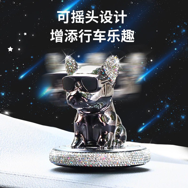 【自动分销专属】镶钻墨镜摇头狗汽车香水摆件带钻斗牛犬车载香薰