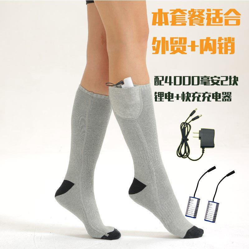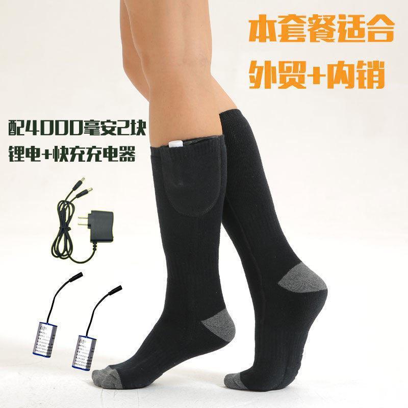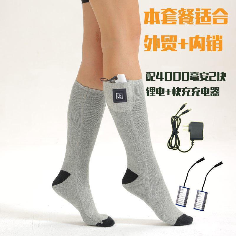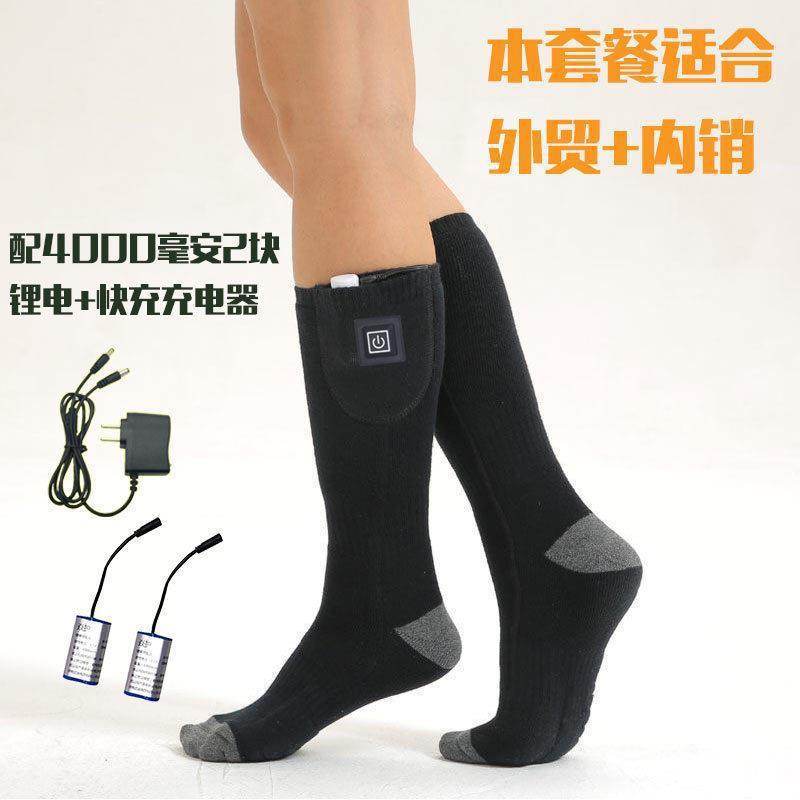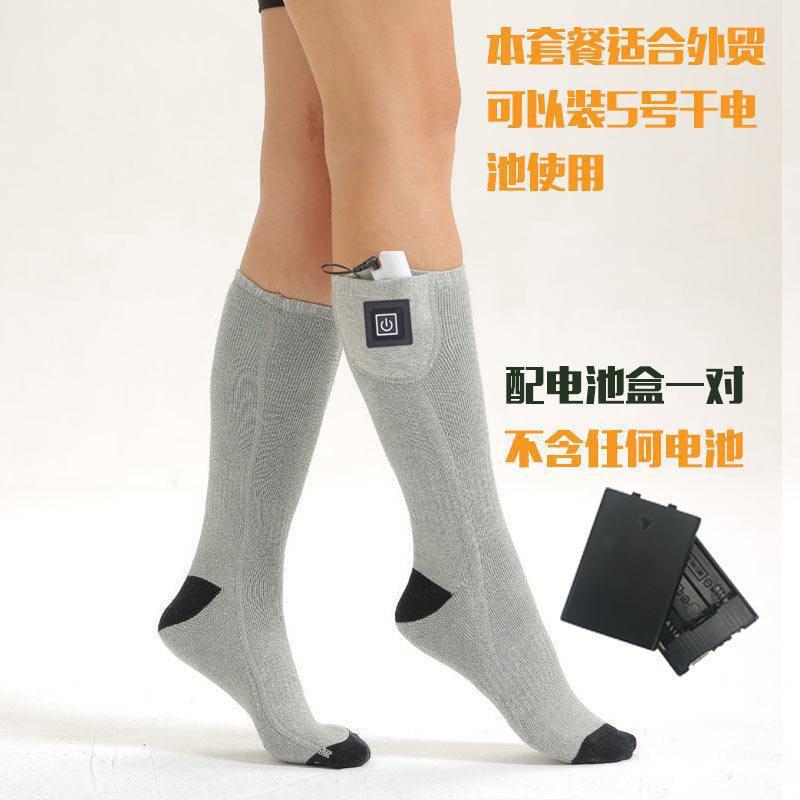 跨境爆款可调温户外发热袜子电加热长筒保暖电热袜充电加热暖脚神
