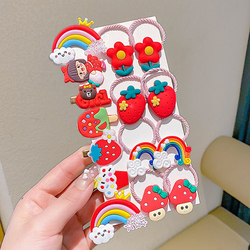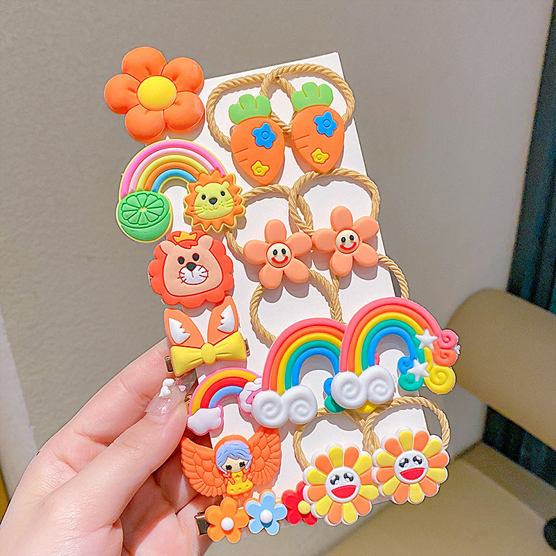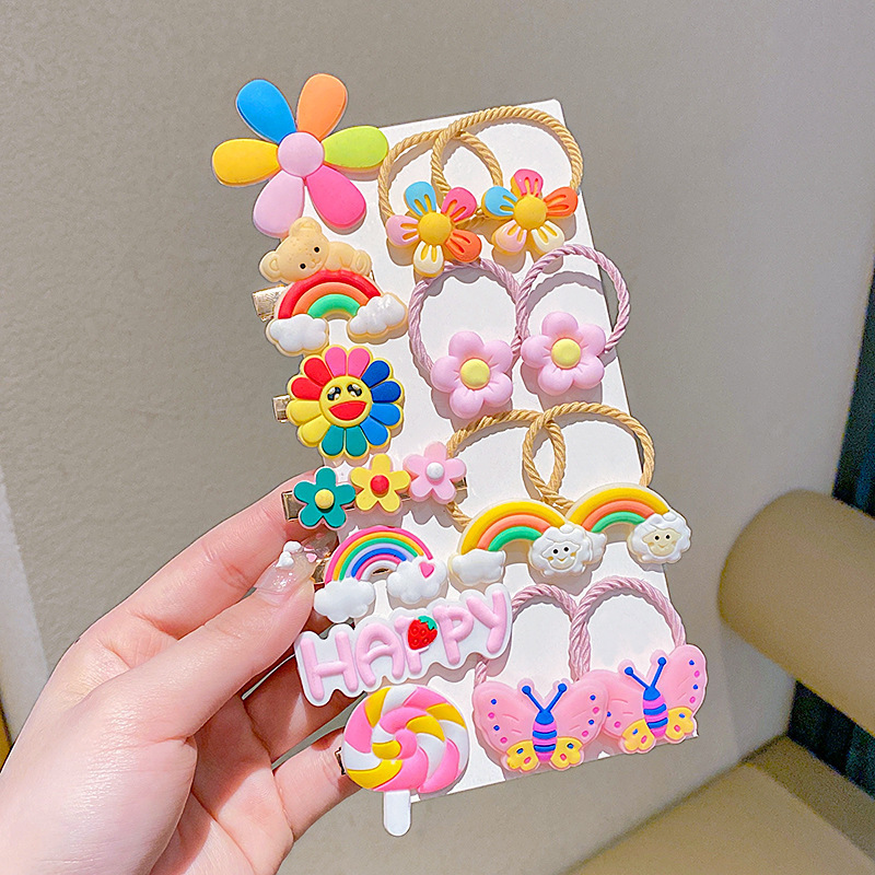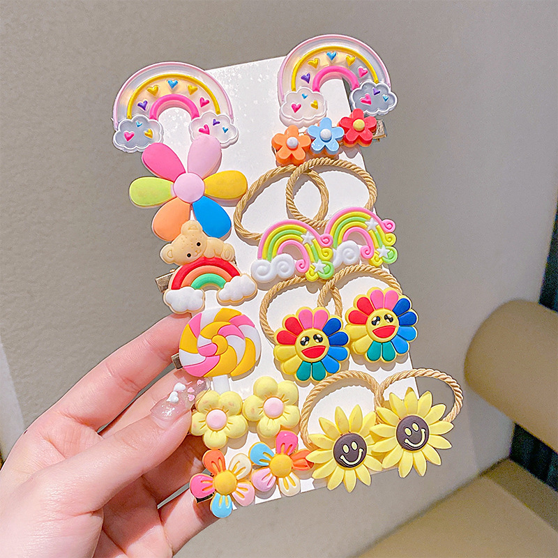韩版宝宝发夹批发卡通彩虹花朵小女孩儿童发饰套装糖果色女童发卡