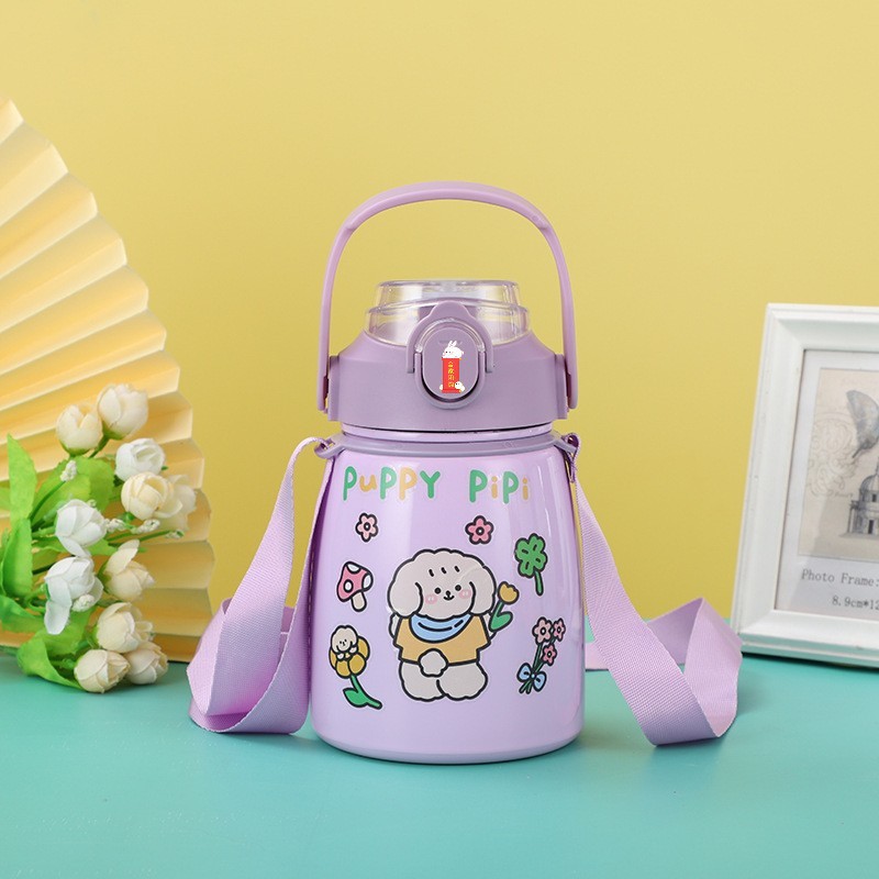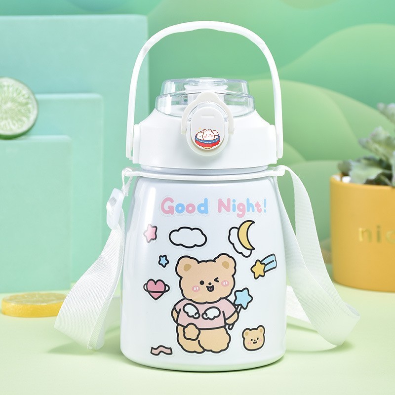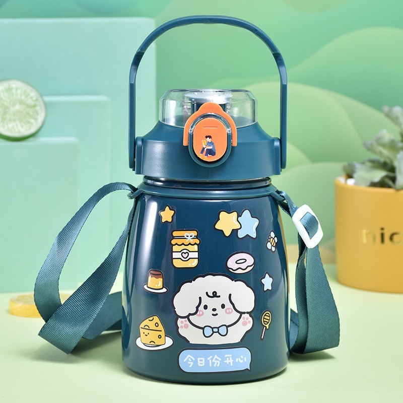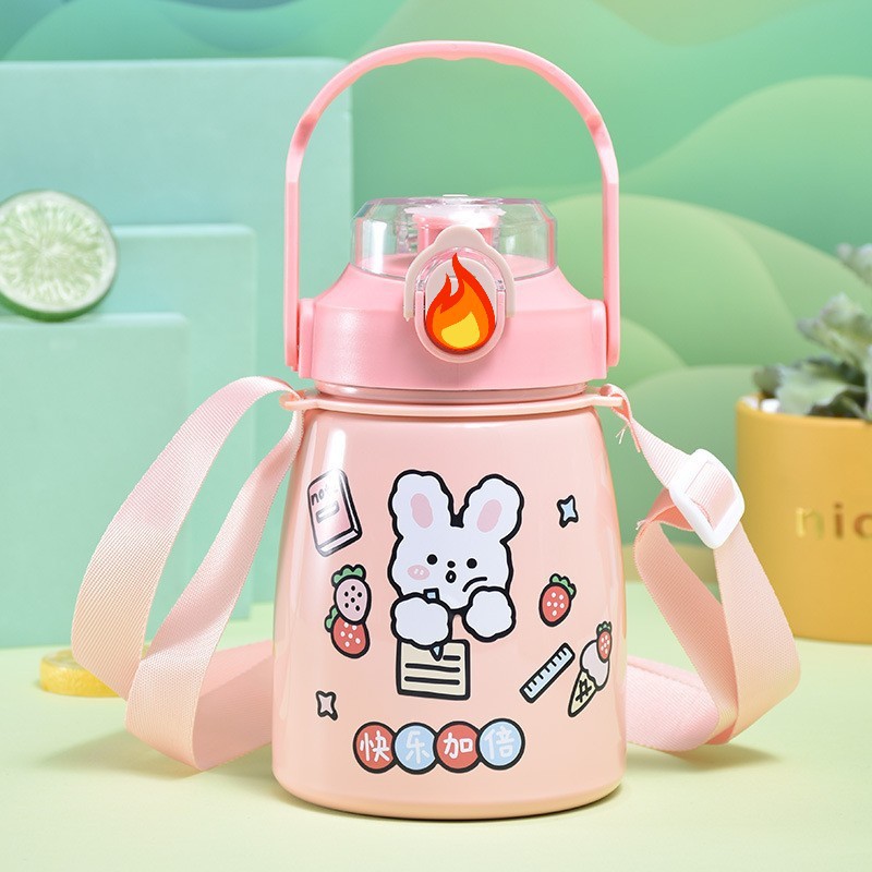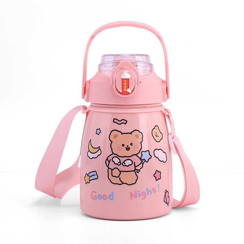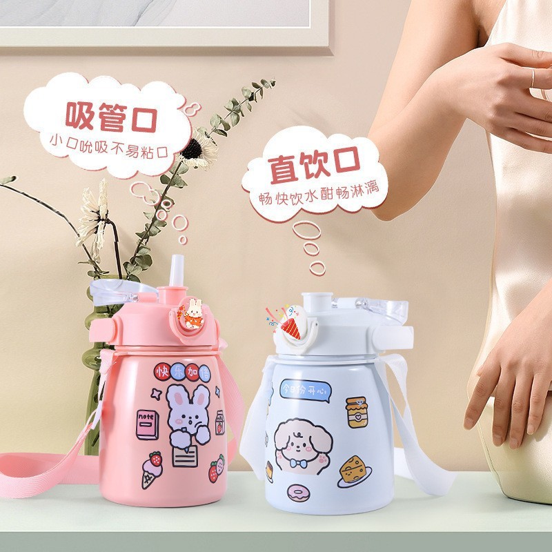 大容量带吸管杯斜挎户外保温水杯儿童学生开学季大肚杯卡通水壶