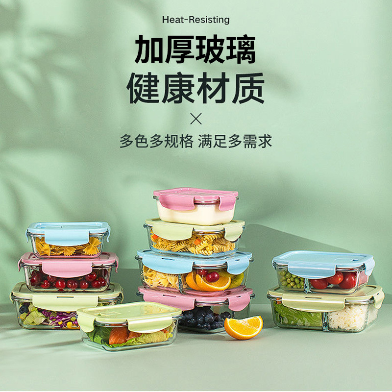 饭盒玻璃冰箱保鲜盒微波炉餐盒学生上班便当盒套装批发密封午餐盒
