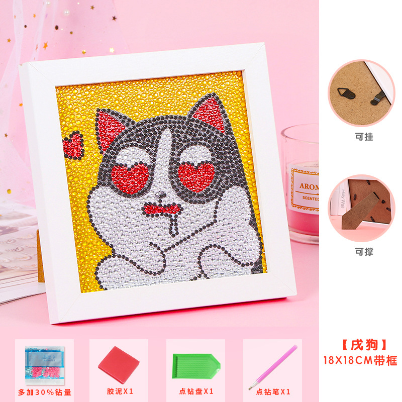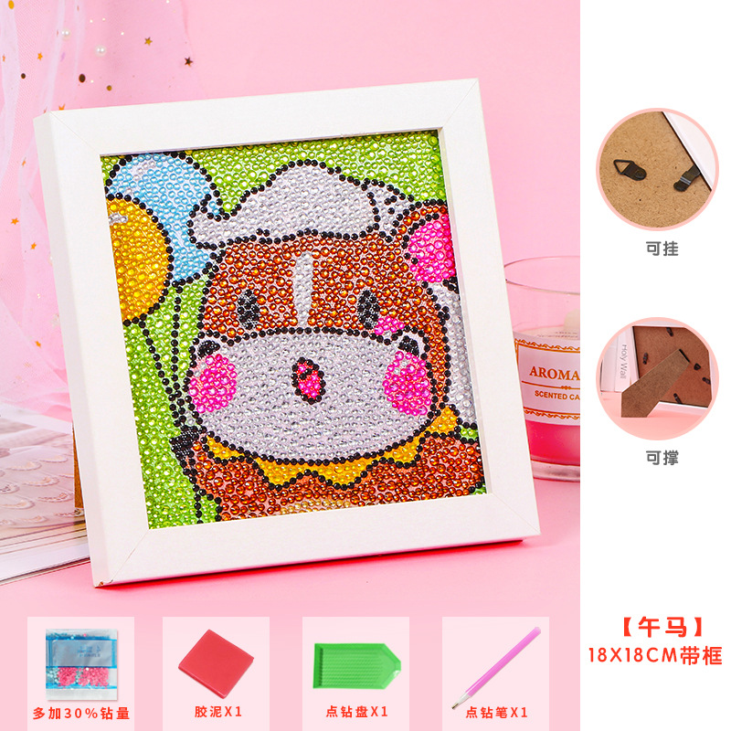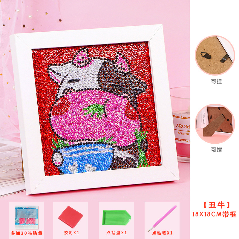 新款12生肖儿童钻石画带框手工diy制作益智卡通装饰点点画定制