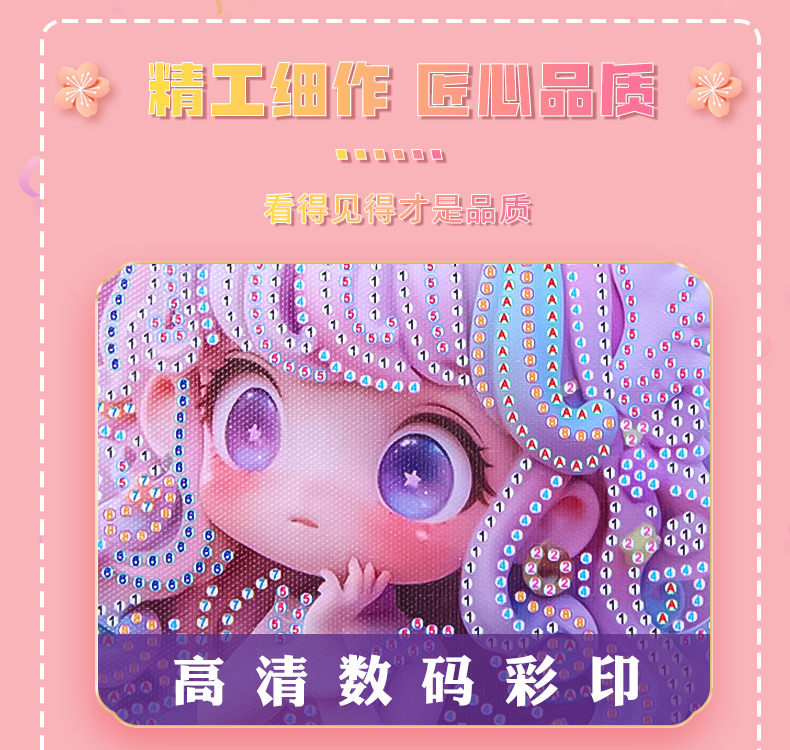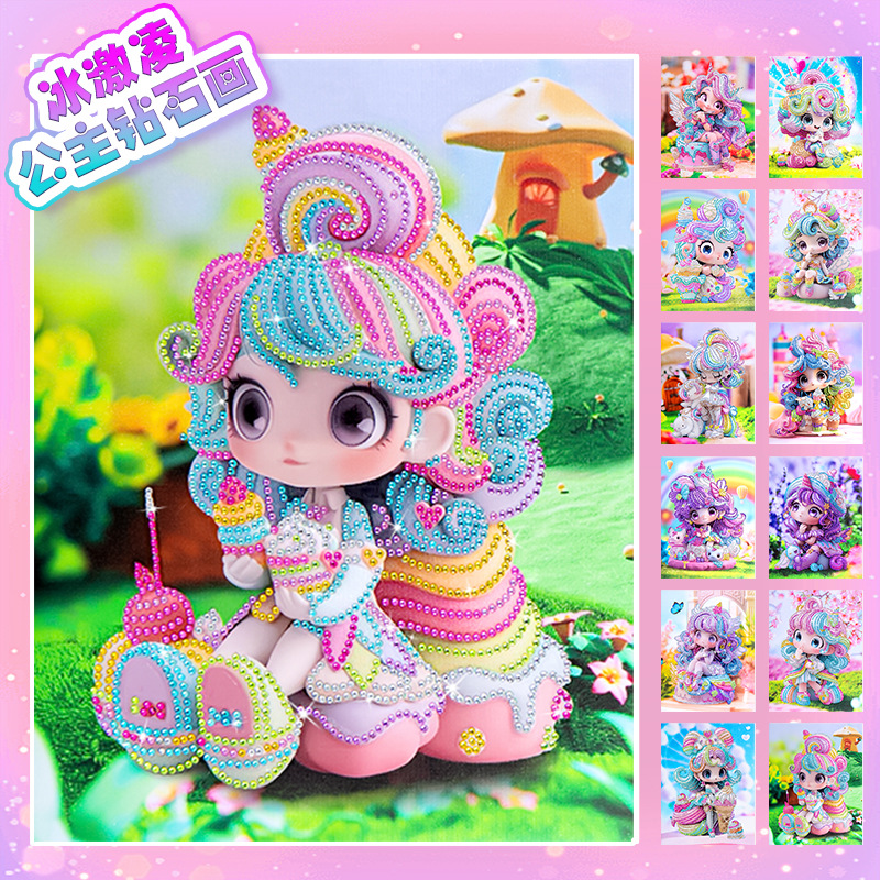爆款手工钻石画diy十字绣钻画儿童摆摊冰淇淋公主木框画玩具定做