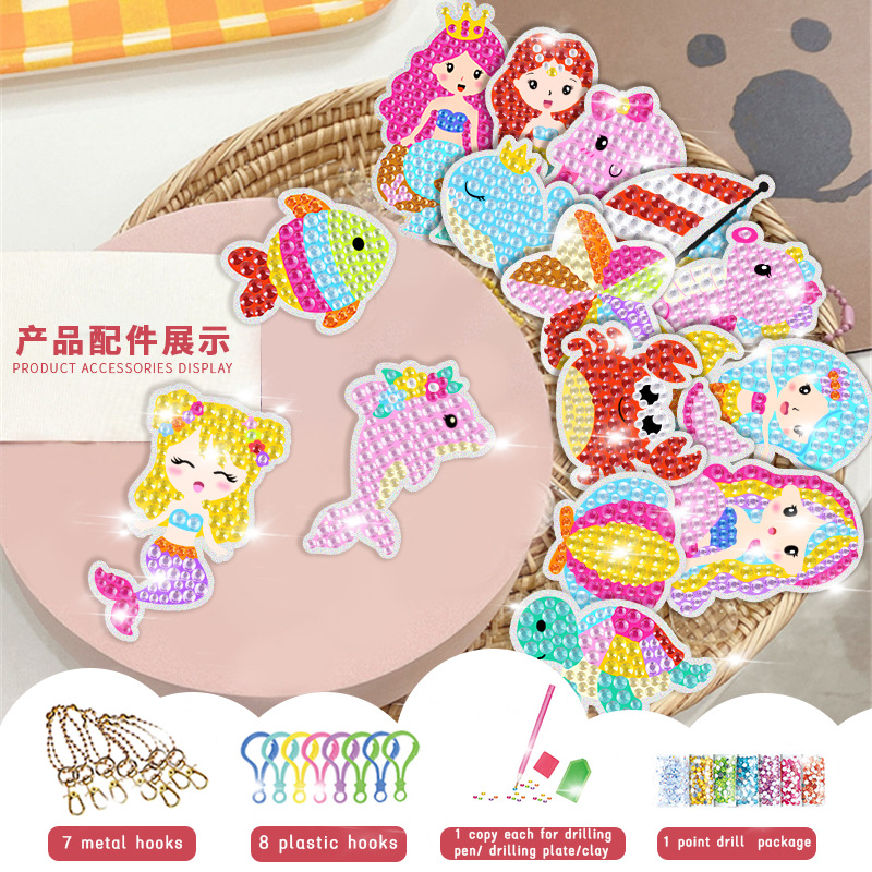 5d亮钻DIY钻石画钥匙扣 美人鱼冰激凌儿童点钻钥匙扣厂家定制