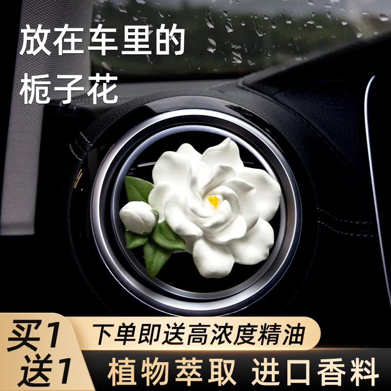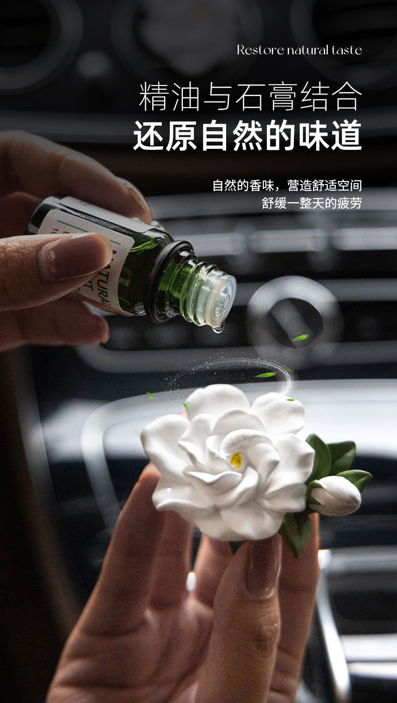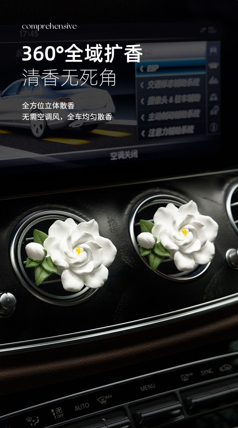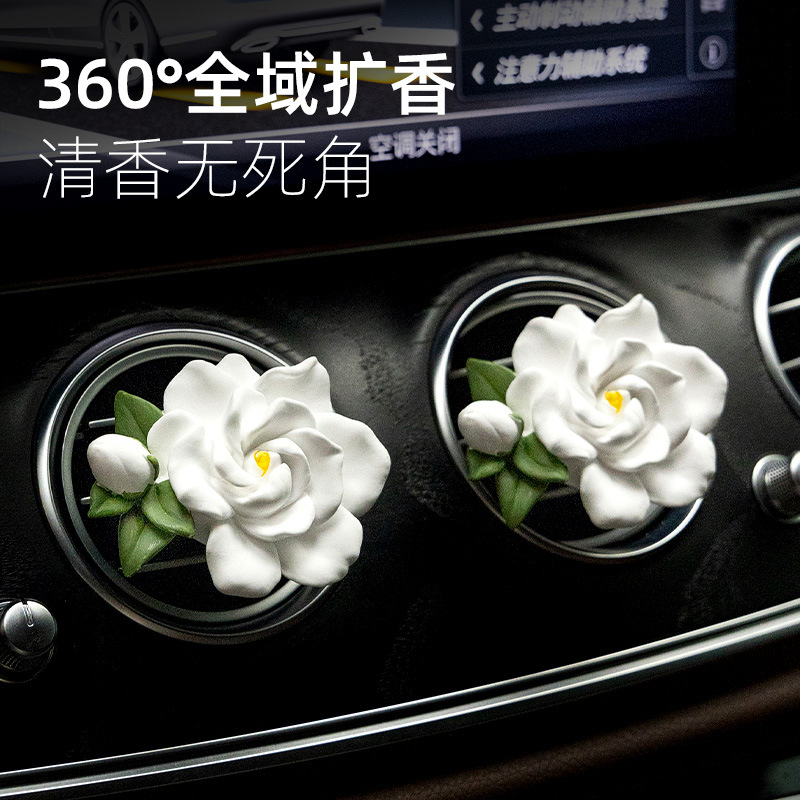 栀子花车载香薰扩香石汽车空调出风口装饰车用香水女生车内饰摆件