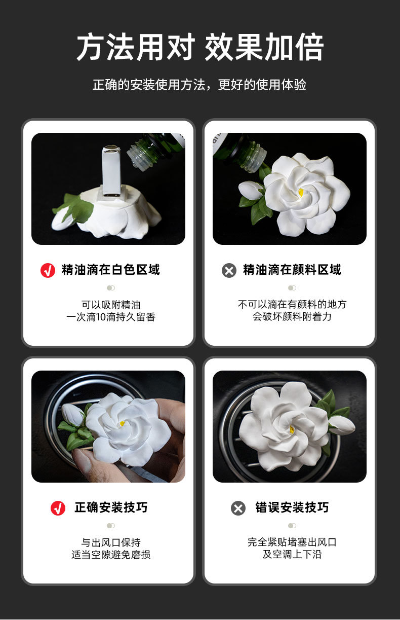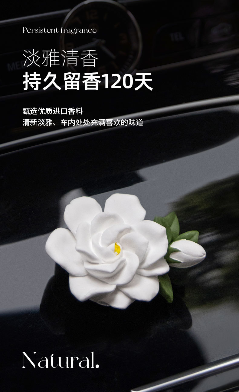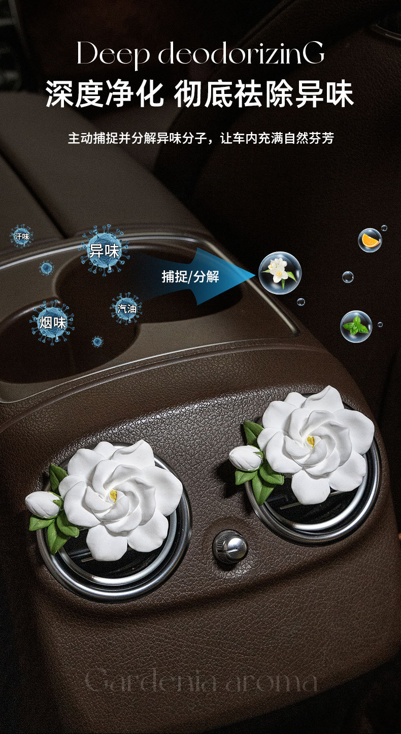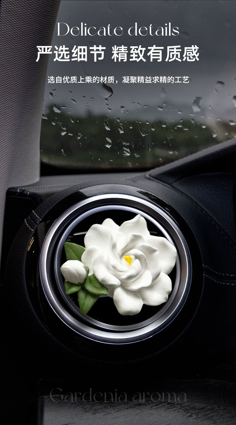 栀子花车载香薰扩香石汽车空调出风口装饰车用香水女生车内饰摆件