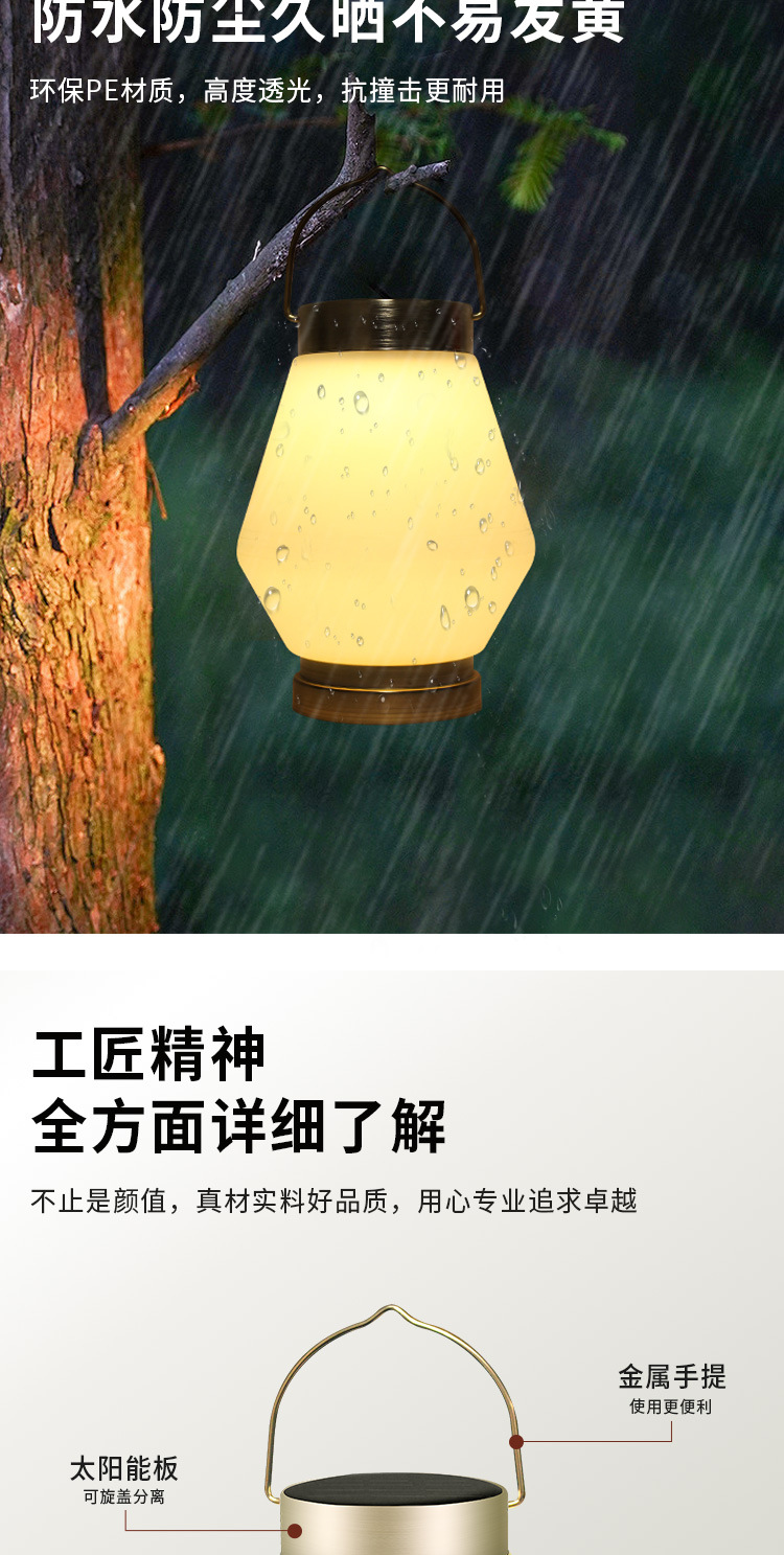户外休闲手提灯庭院野营露营灯LED太阳能充电防水帐篷灯桌面台灯