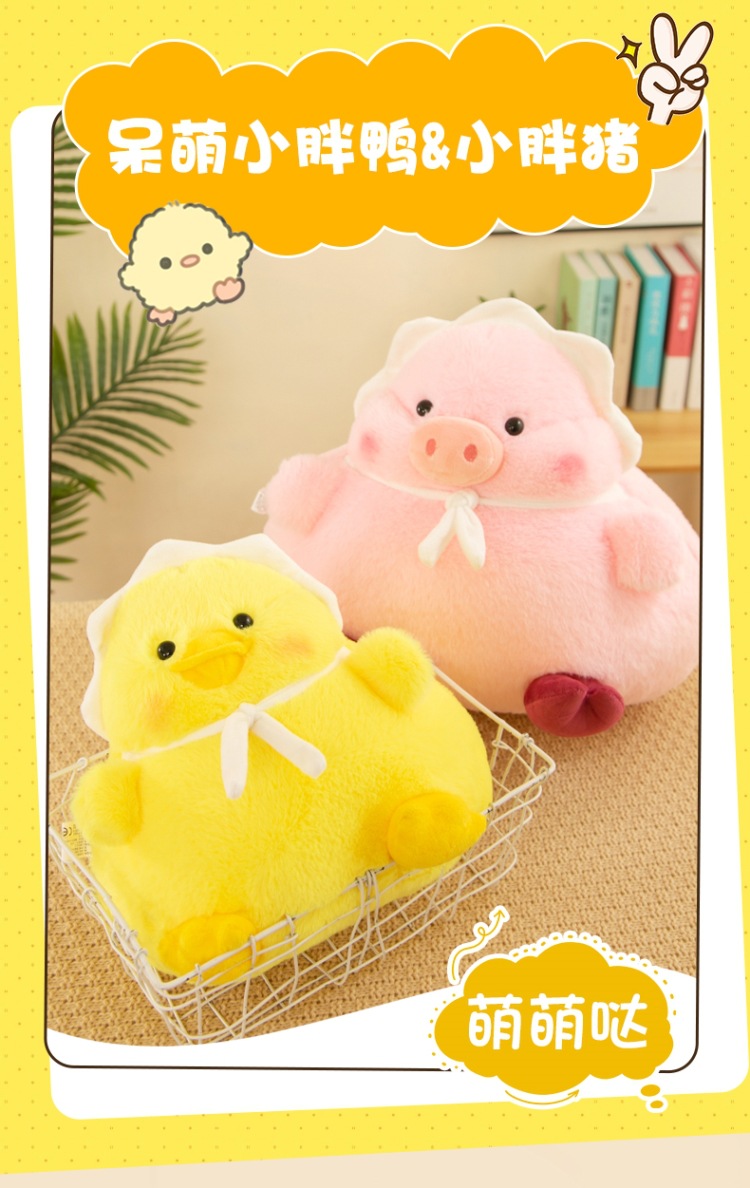 创意款呆萌可爱墩墩小猪公仔儿童卡通小黄鸭毛绒玩具居家玩偶摆件
