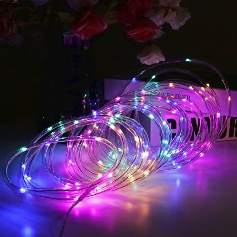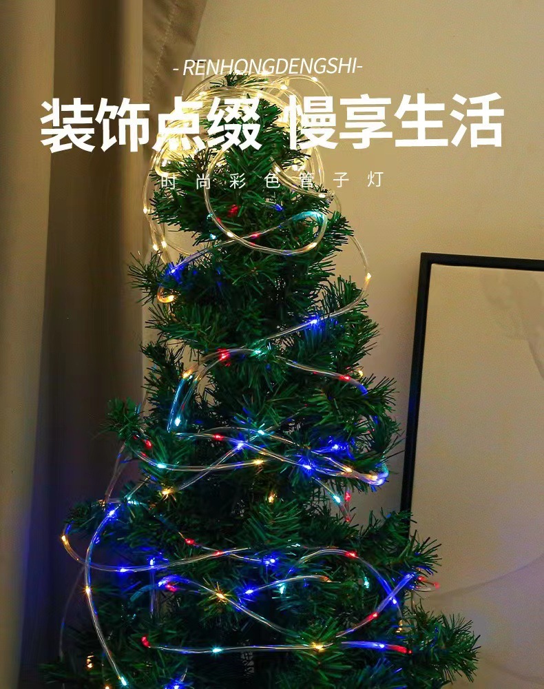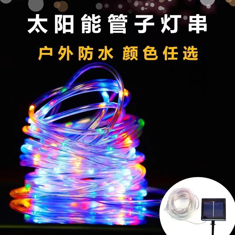 LED太阳能铜线管子灯户外防水圣诞树彩灯PVC彩虹管装饰灯跨境批发