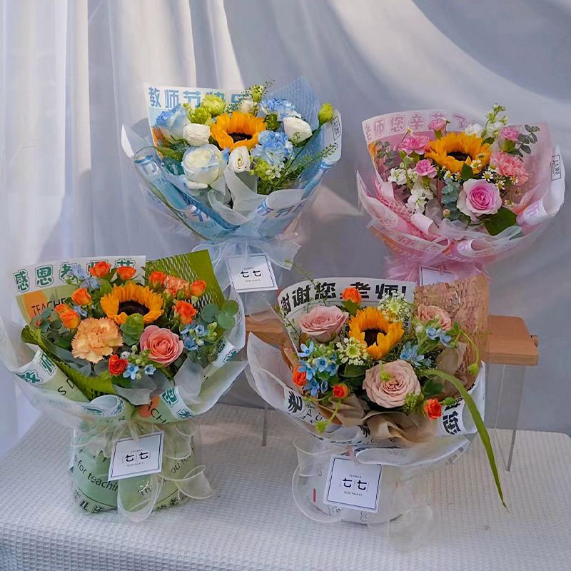 教师节花束礼物包花纸送老师手工礼物防水花束纸教师节鲜花包装纸