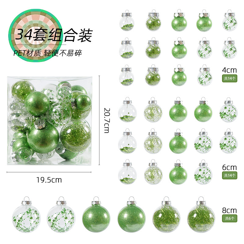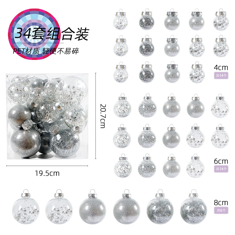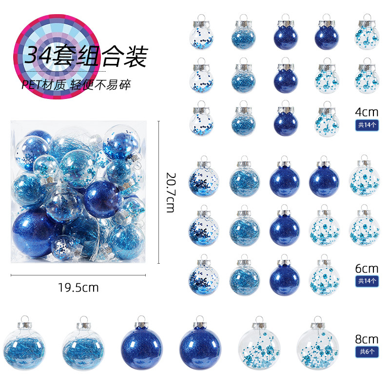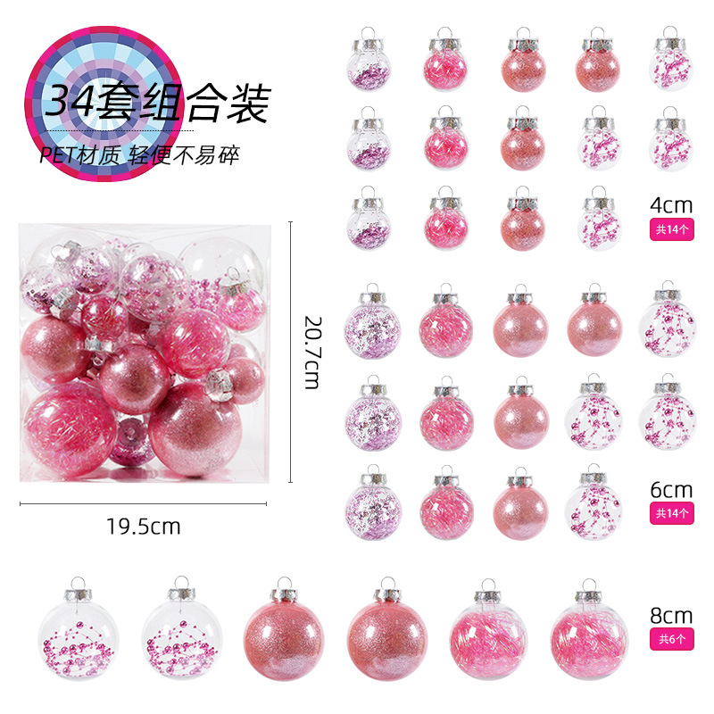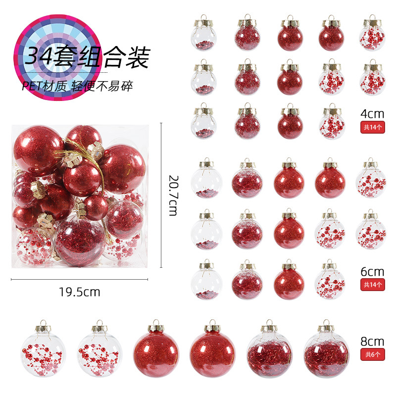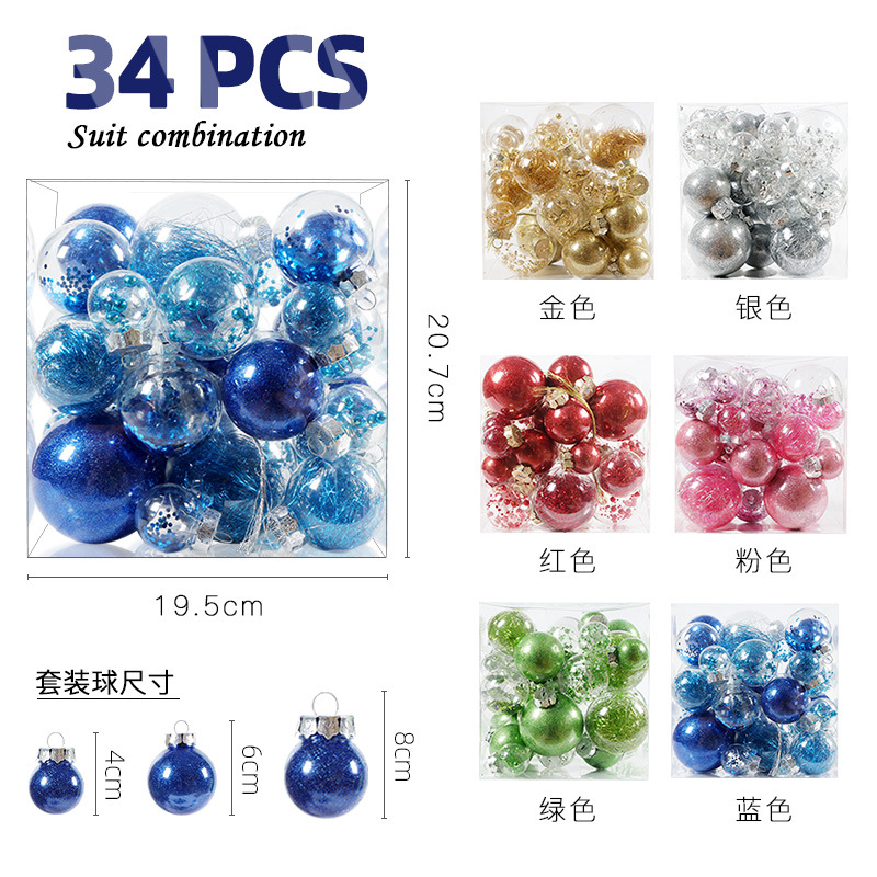 跨境圣诞新款电镀塑料球4 6 8cm圣诞球圣诞树挂件34套装款饰品