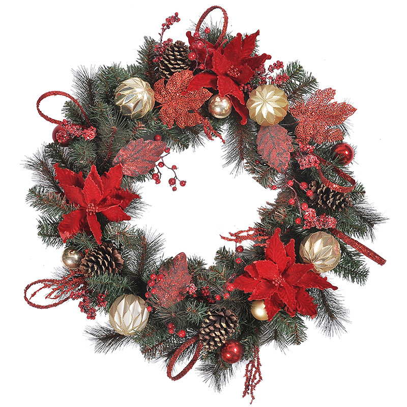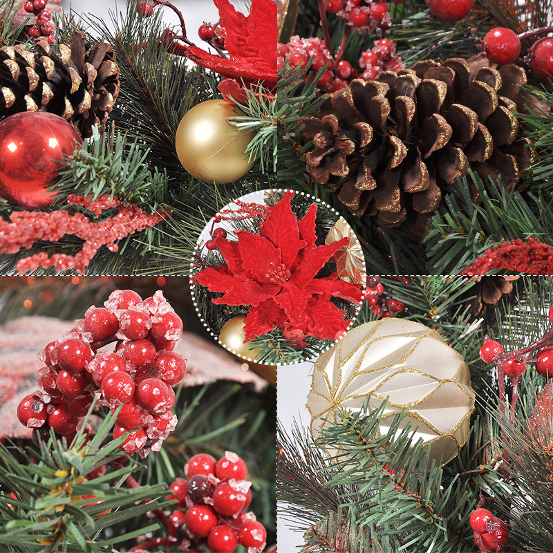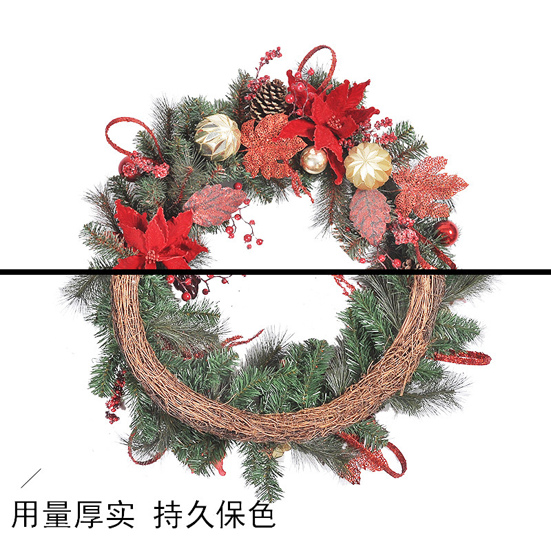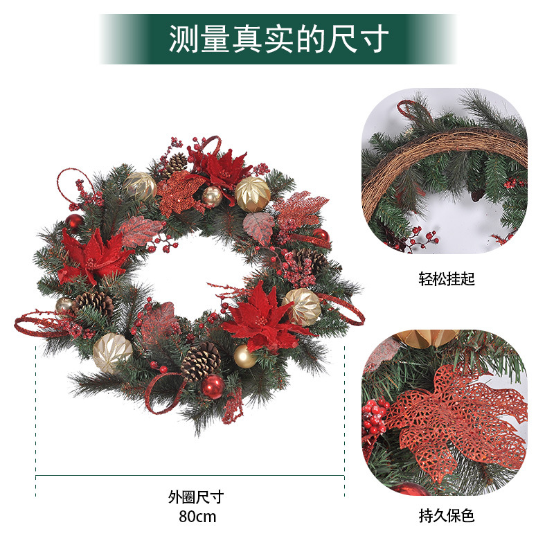 亚马逊新款仿真圣诞壁炉红花圣诞球花环家居氛围门挂欧美装饰花环