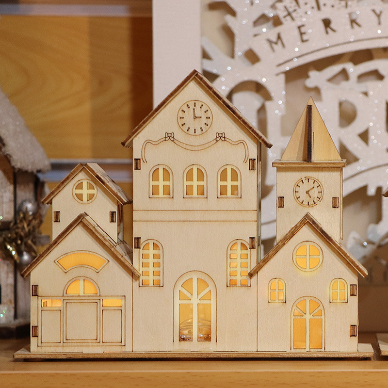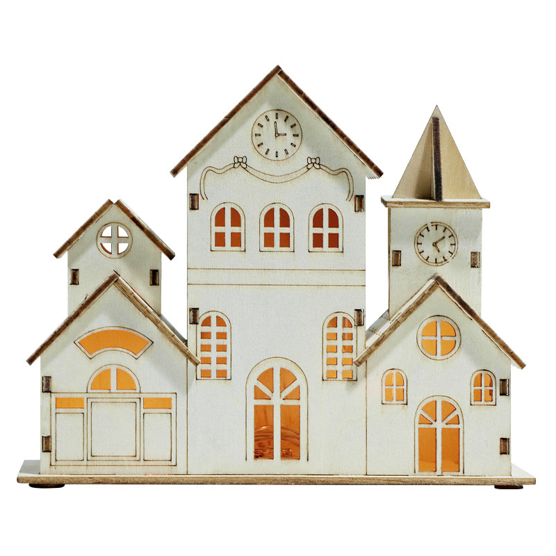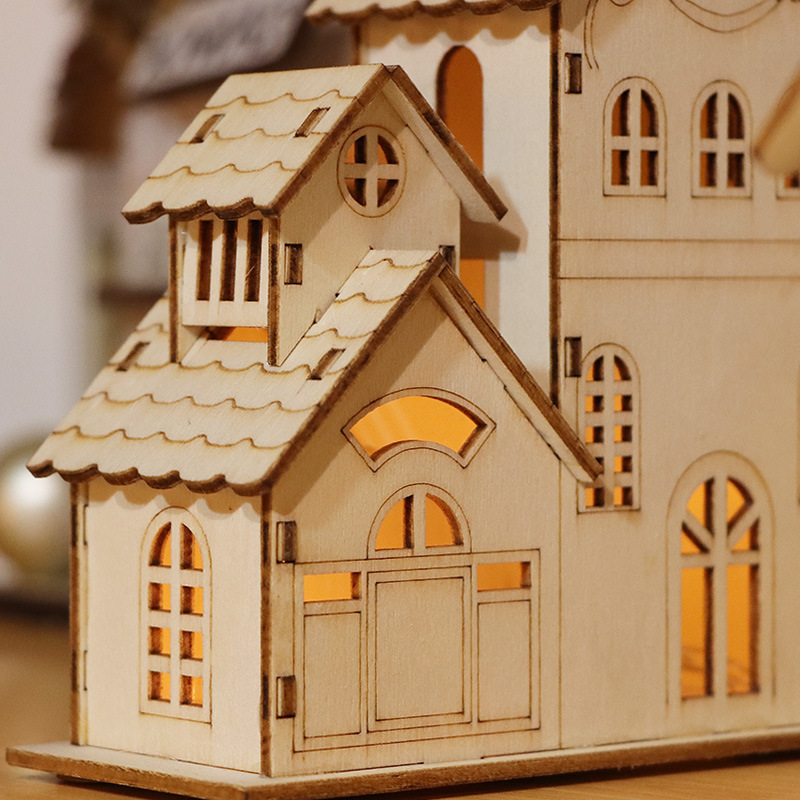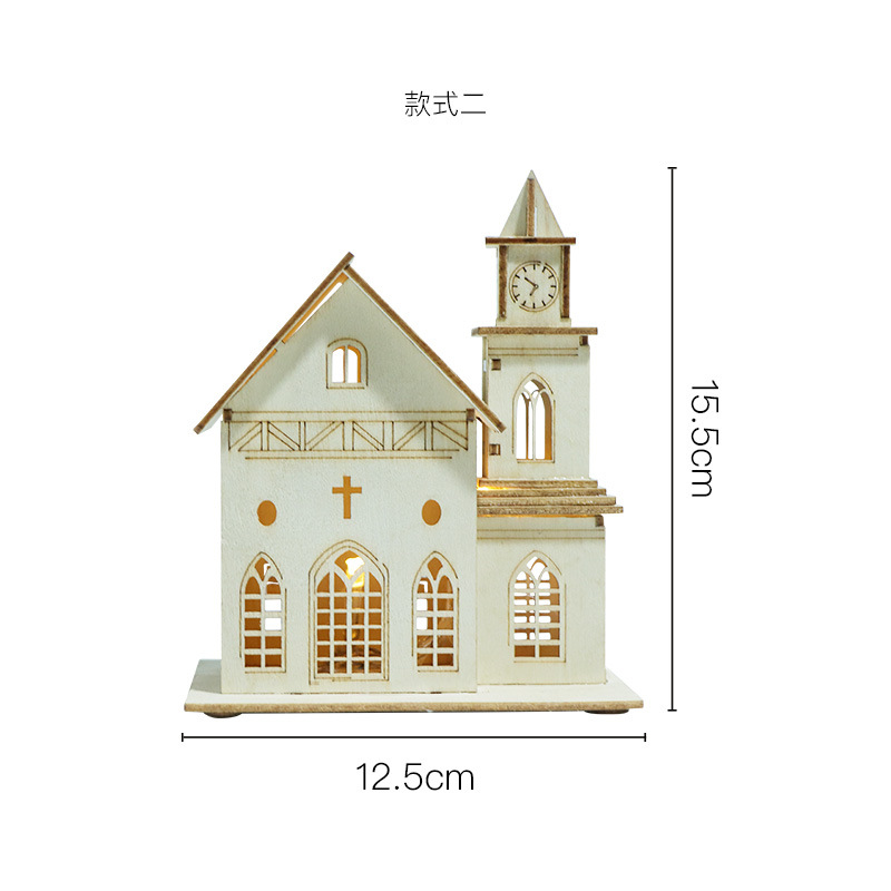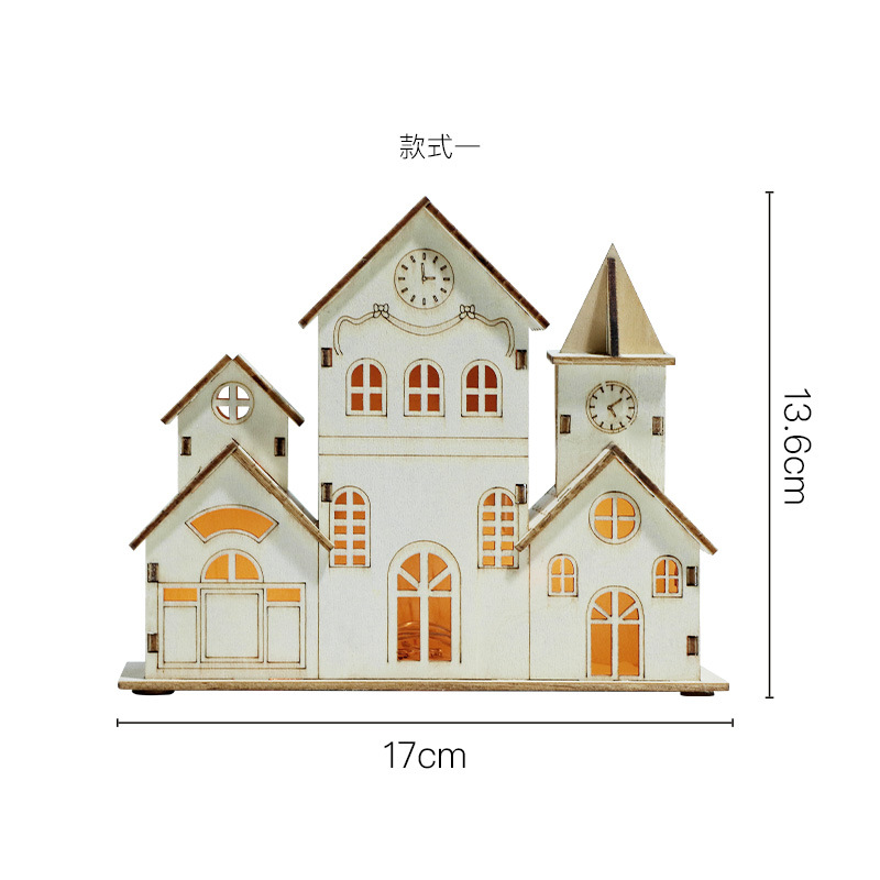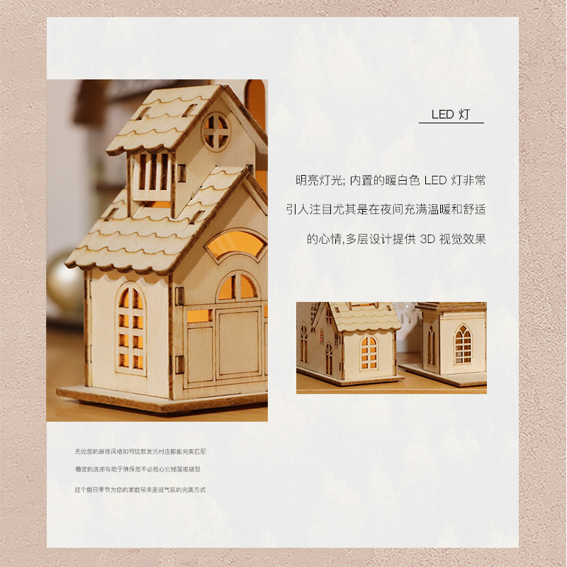 木制小屋桌面LED灯氛围装饰纽扣电池办公桌假日装扮带灯新