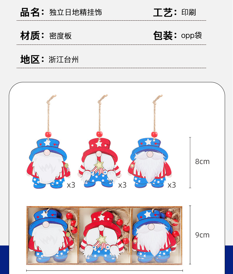 独立日夹板9件套大地精美国木制7月4日装饰餐桌装饰标志独立日上