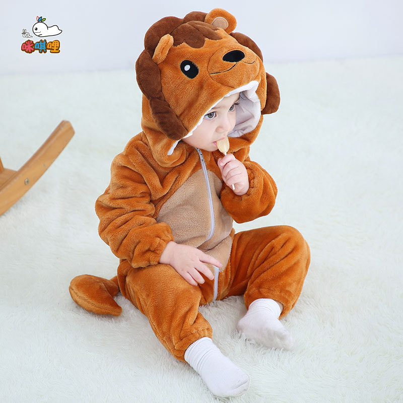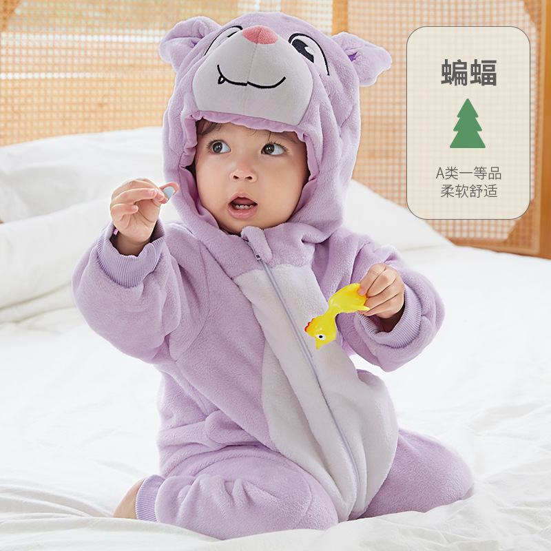 咪唭哩INS动物造型宝宝连体衣A类法兰绒婴儿爬服秋冬款儿童衣服