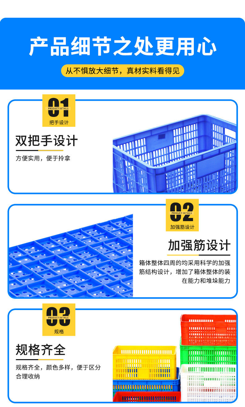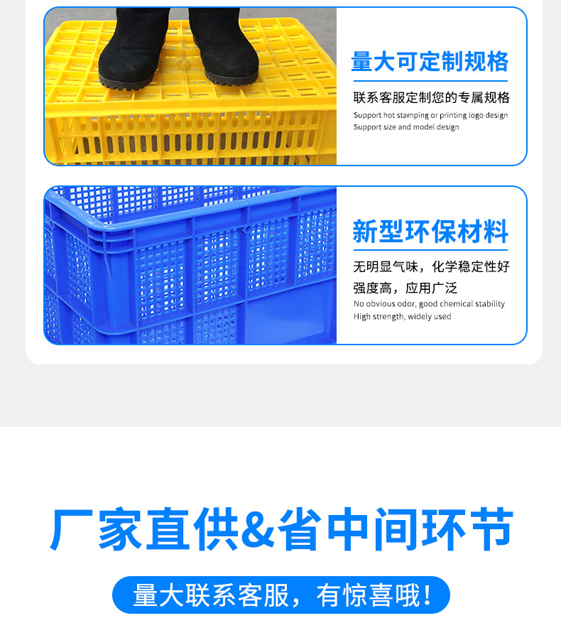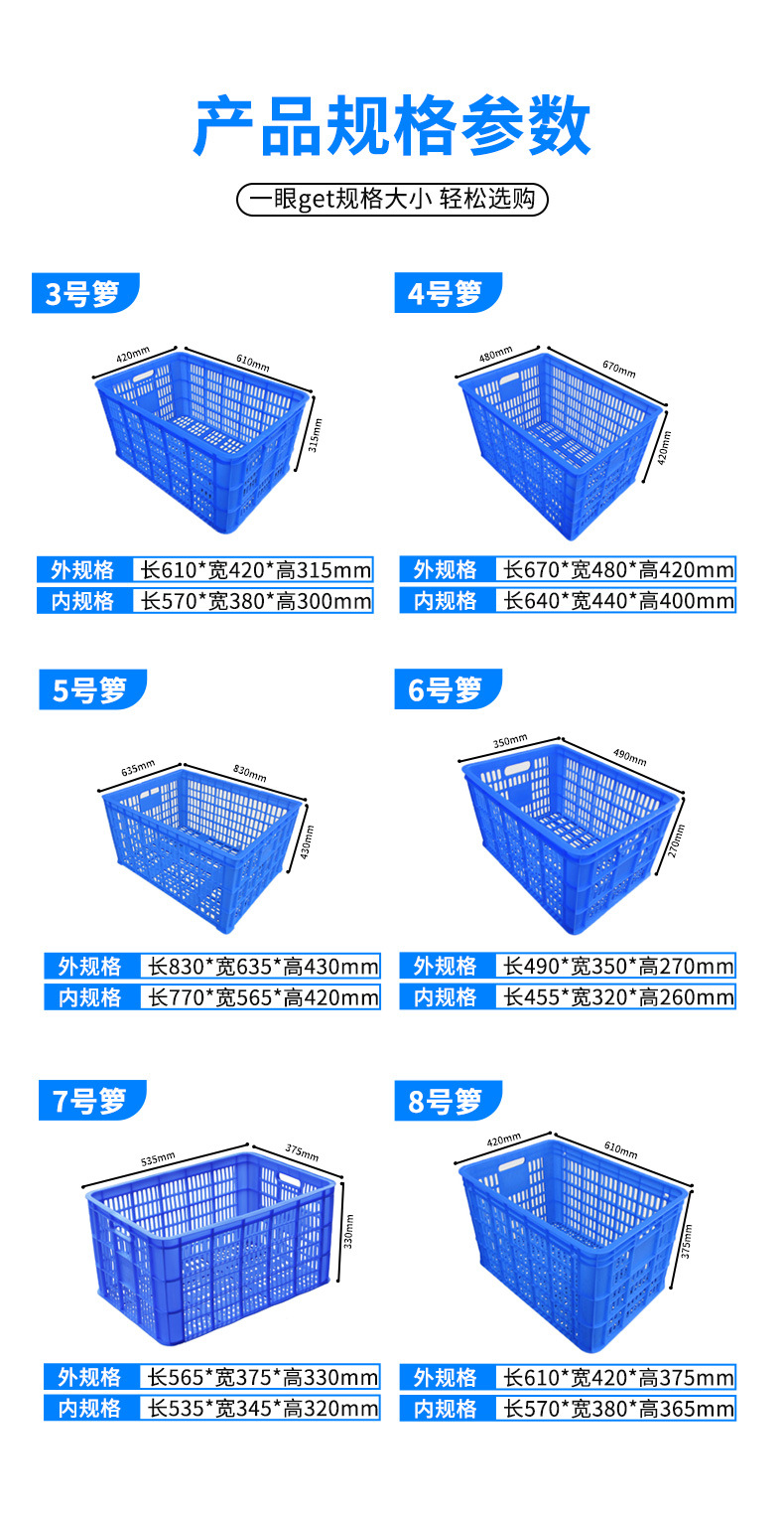 加厚塑料筐熟料周转筐蓝色食品水果筐蔬菜筐大号框子箩筐胶框篮子