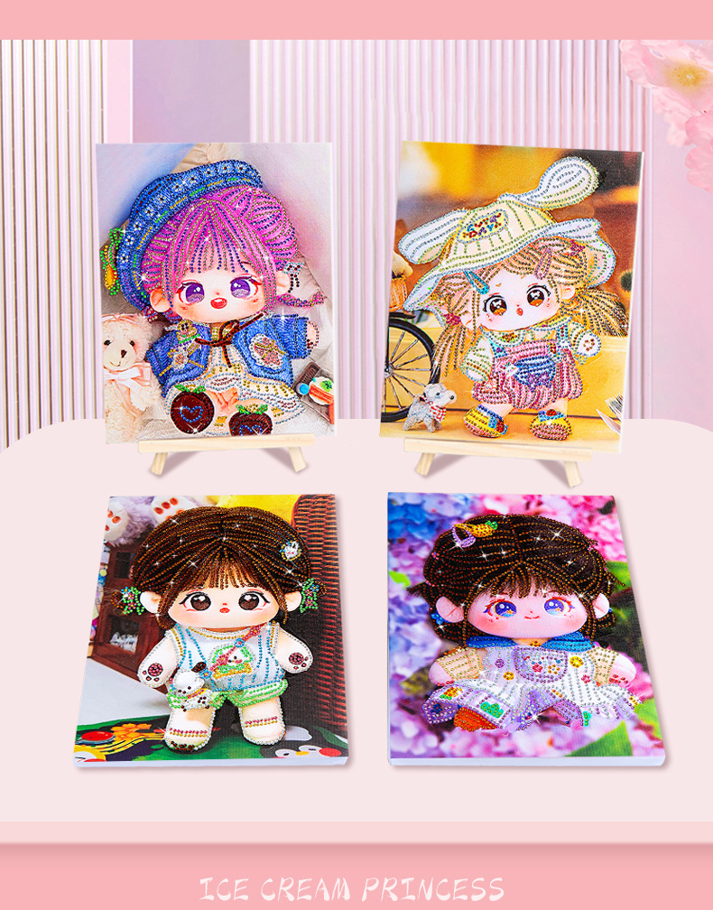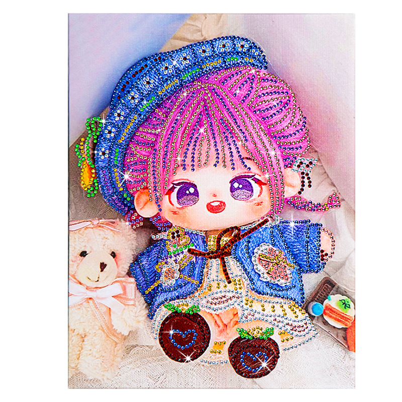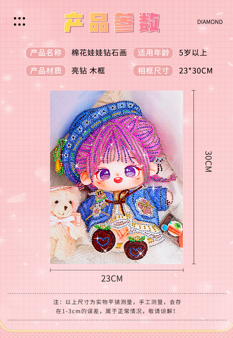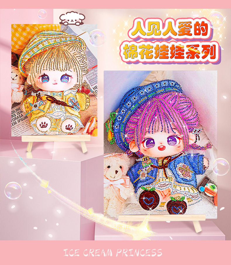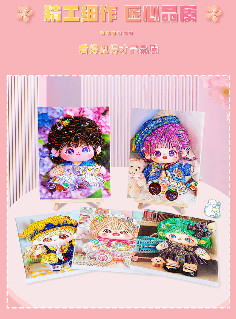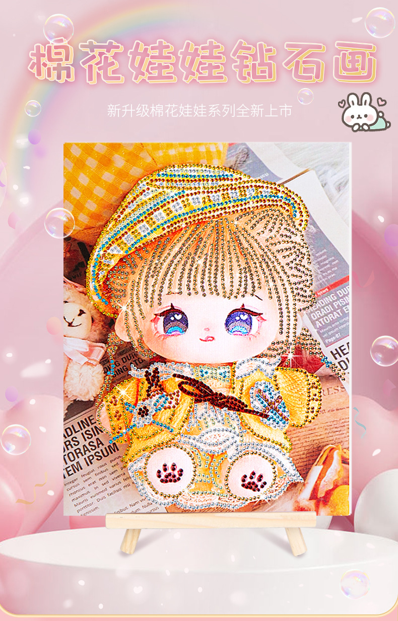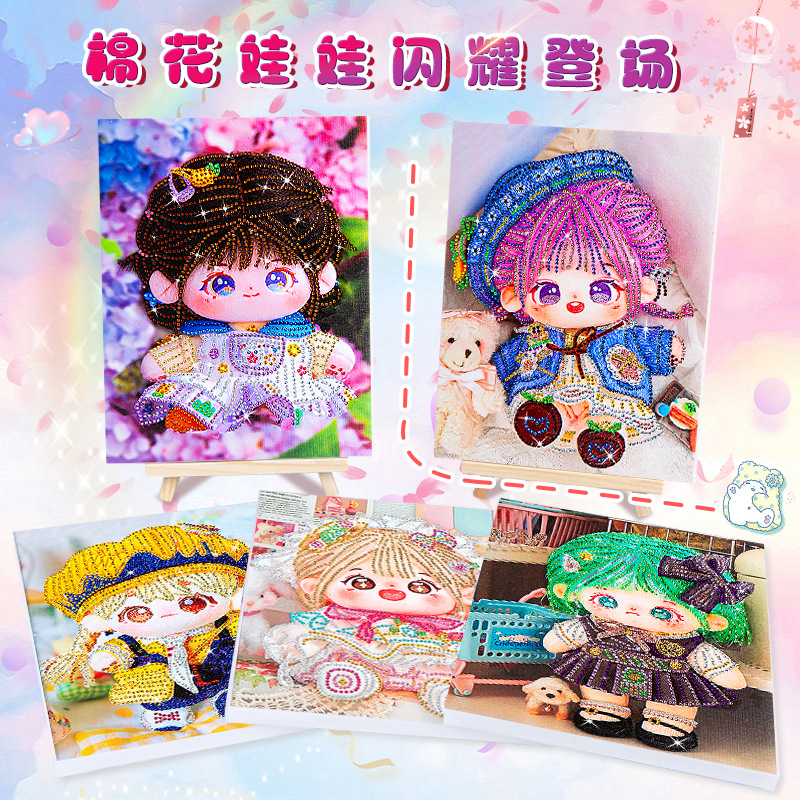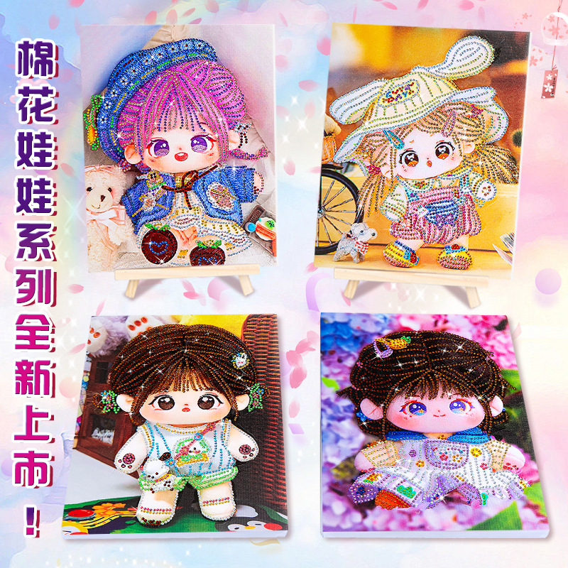 爆款棉花娃娃钻石画儿童带框diy手工制作砖石画摆摊十字绣贴钻画