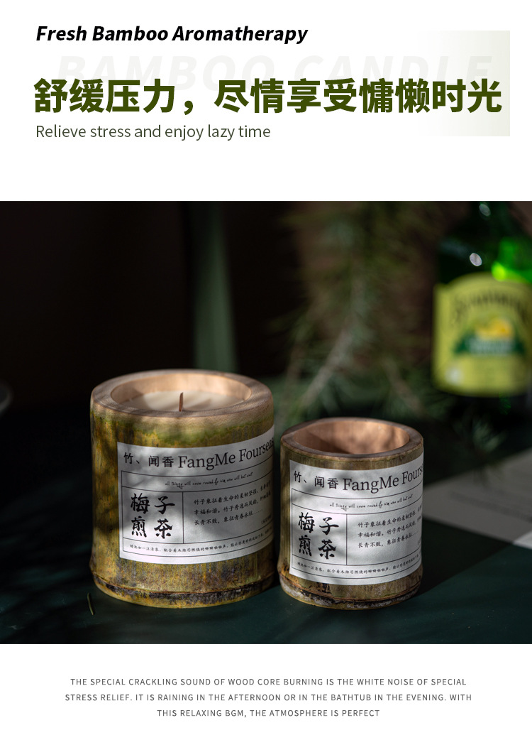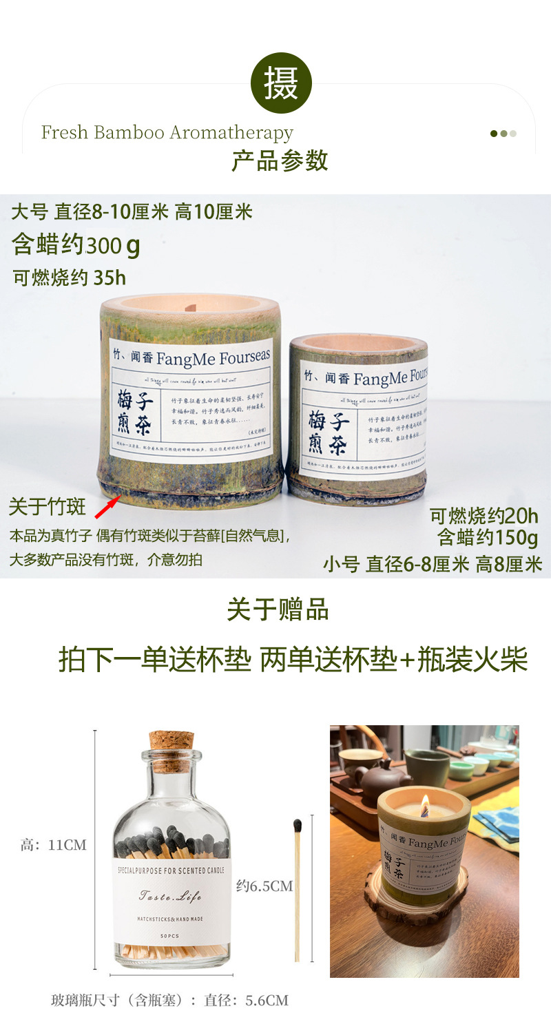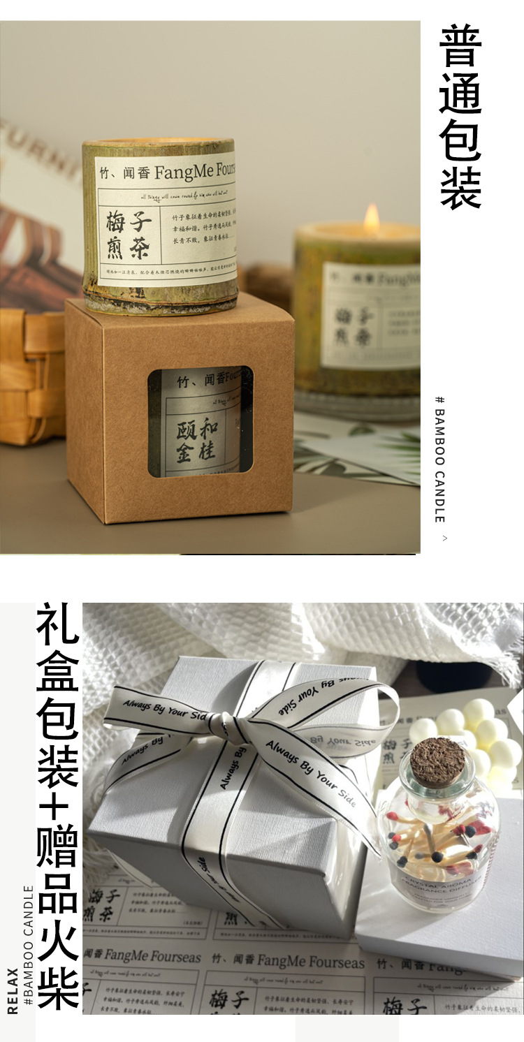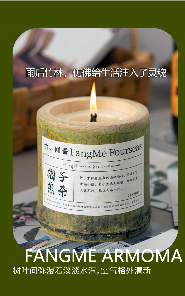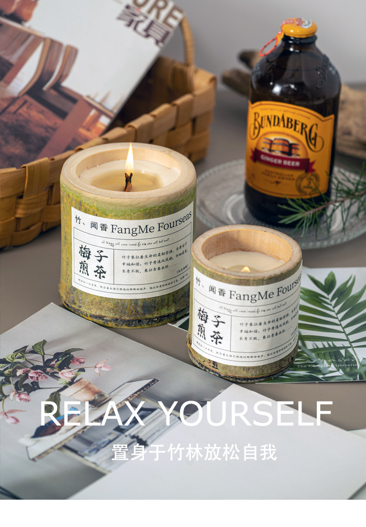 竹你平安竹子香薰蜡烛香氛礼物梅子煎茶大豆蜡伴手礼批发室内持久