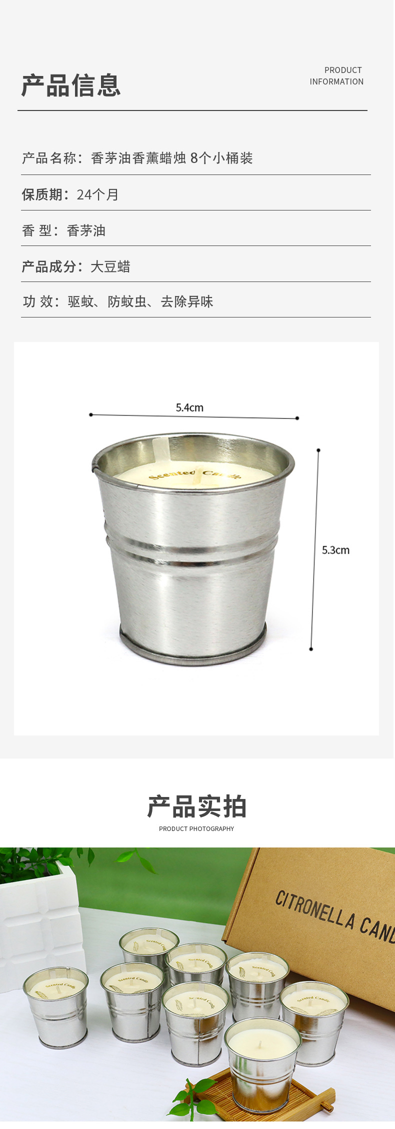 家用室内香薰蜡烛香氛植物大豆蜡香茅精油驱蚊礼盒蜡烛厂家批发