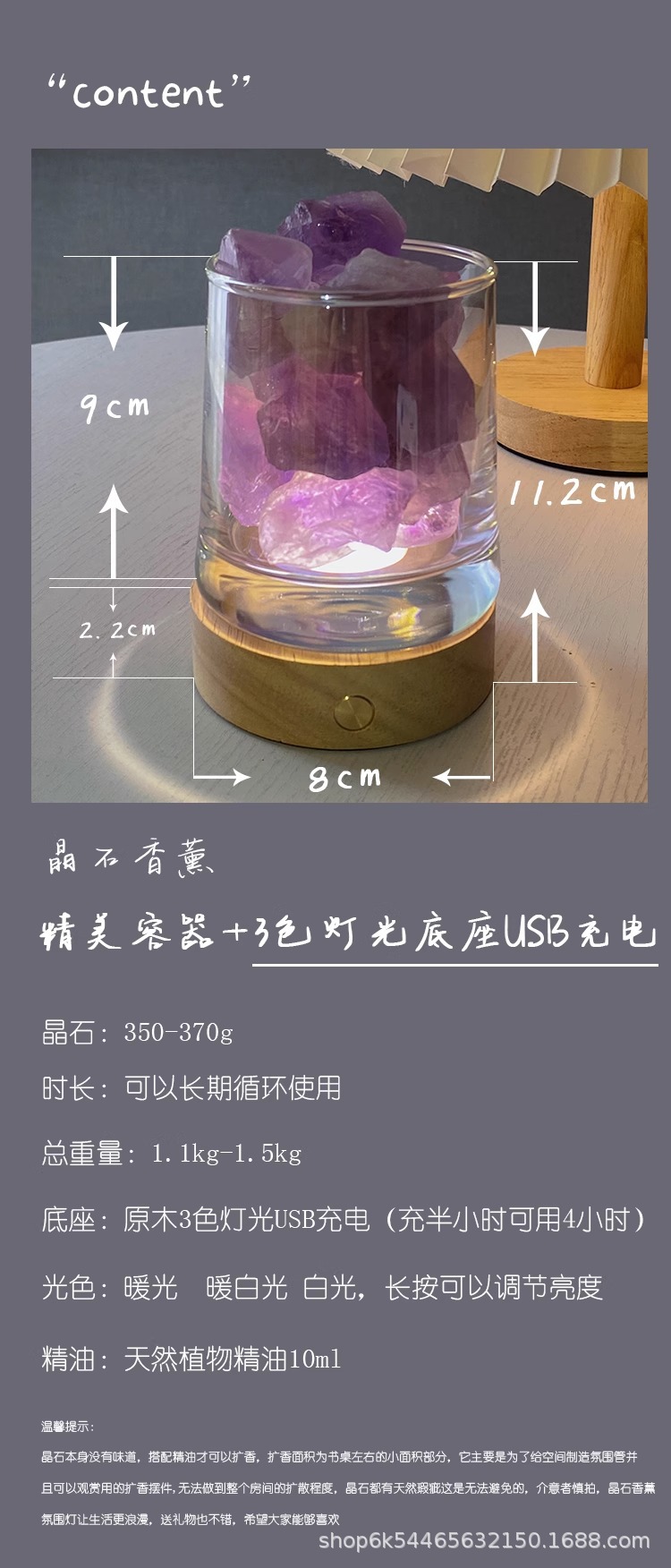 无火水晶香薰摆件卧室小夜灯室内持久扩香石摆件闺蜜生日礼物批发