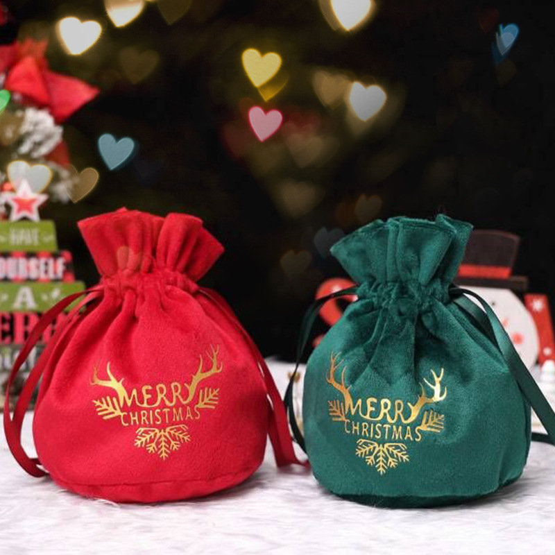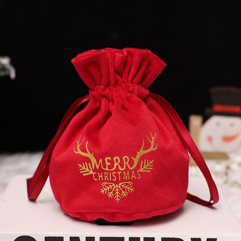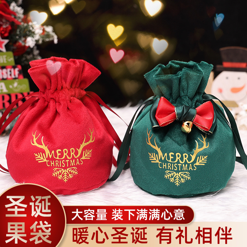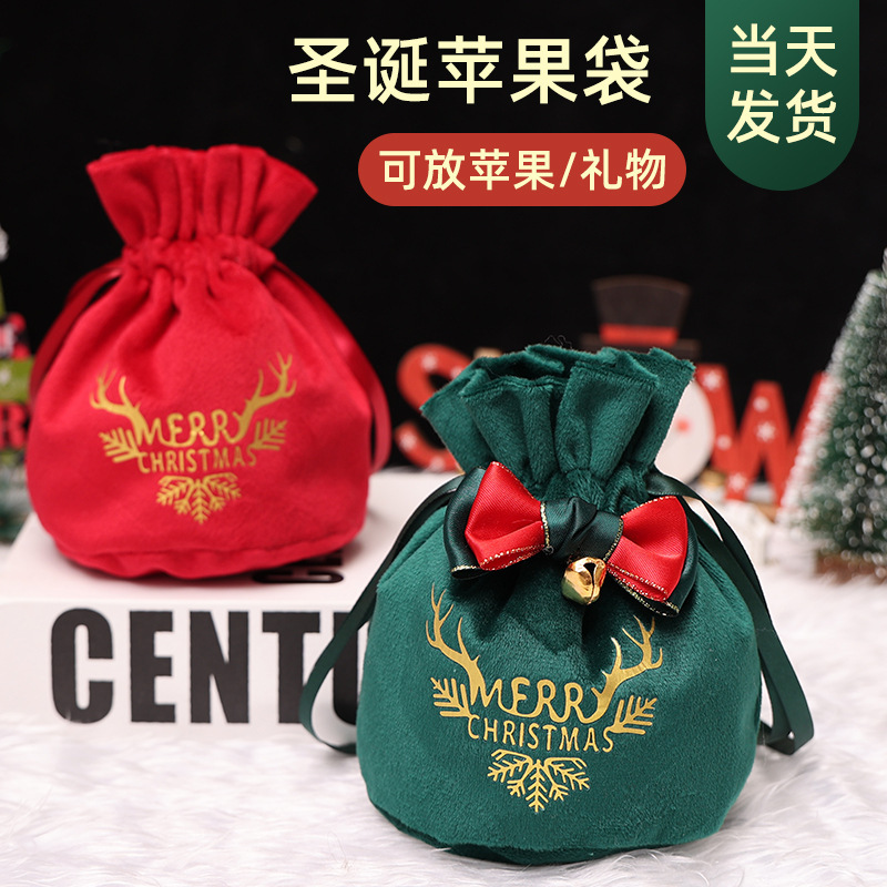 圣诞节装饰束口绒布苹果袋礼物袋礼品袋平安夜苹果包装盒糖果袋