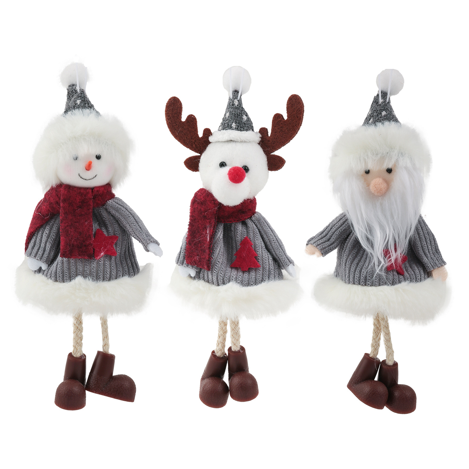 跨境圣诞节装饰老人雪人麋鹿小吊件毛绒布艺圣诞树挂件装饰配件