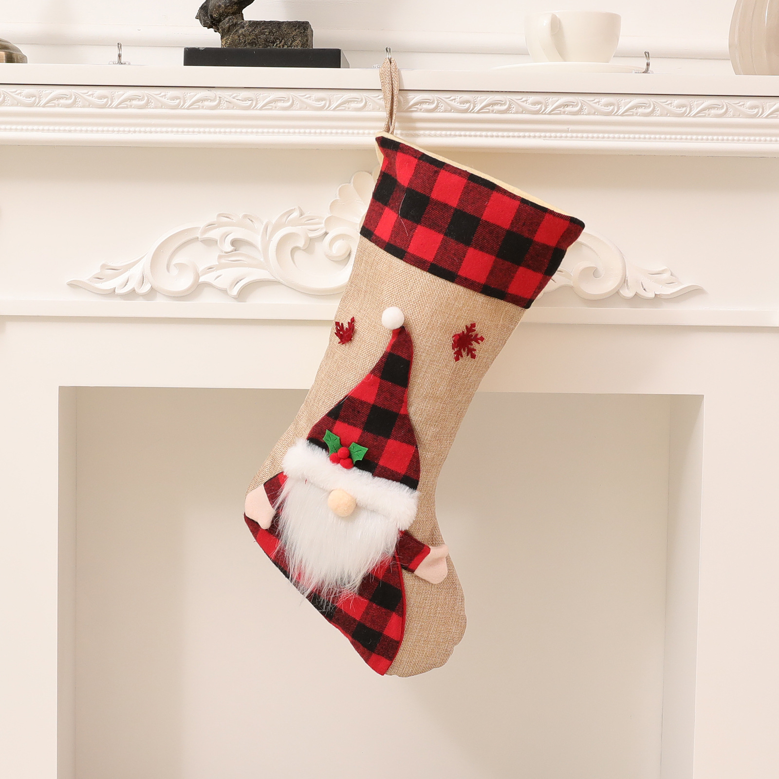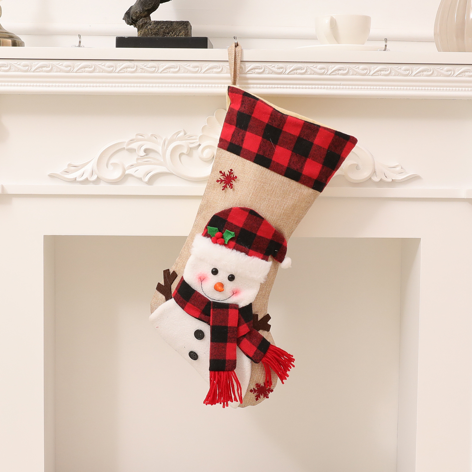 圣诞新款圣诞节装饰品绒麻布3D立体卡通圣诞袜圣诞袜子礼物袋