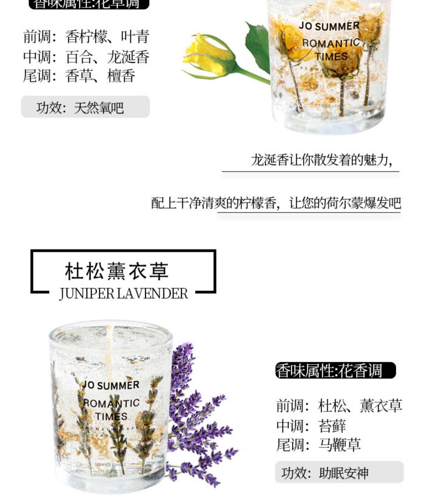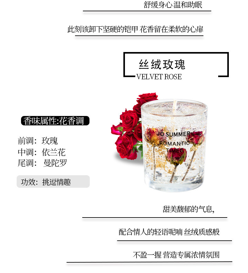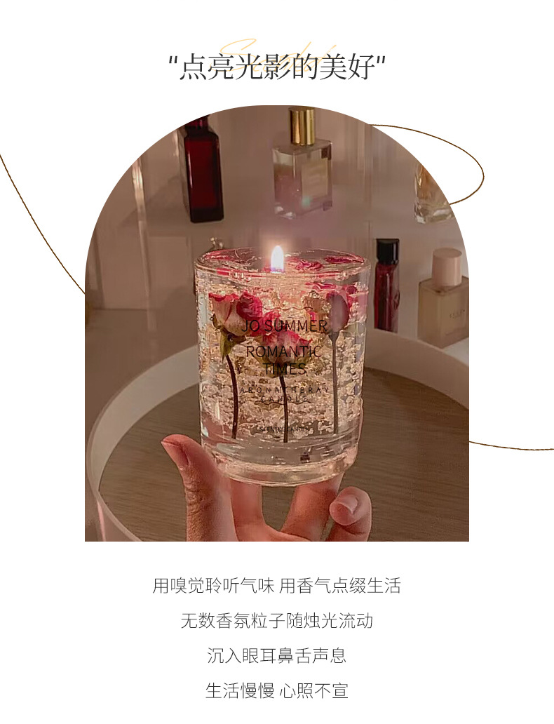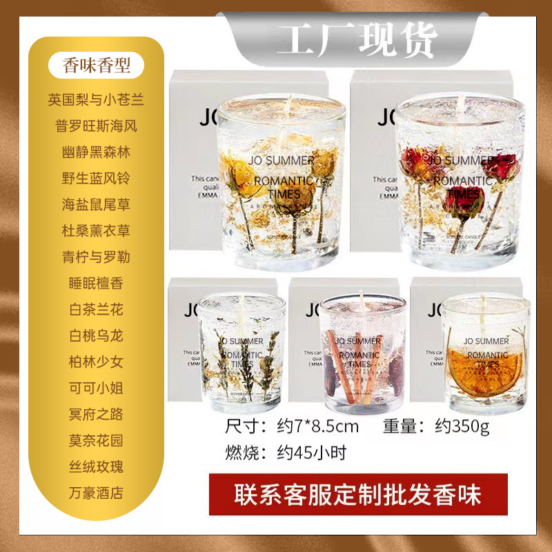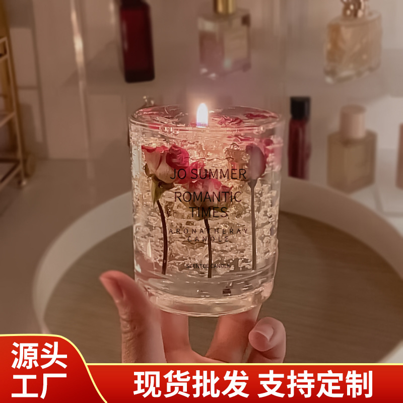 真花果冻香薰蜡烛精油熏香礼盒花艺蜡烛水晶杯卧室香氛摆件伴手礼