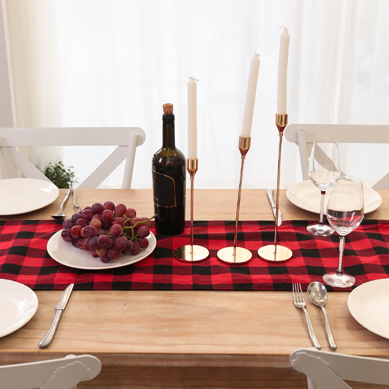 创意欧式圣诞节装饰花格子布桌旗节日居家布置红黑桌布餐桌布垫