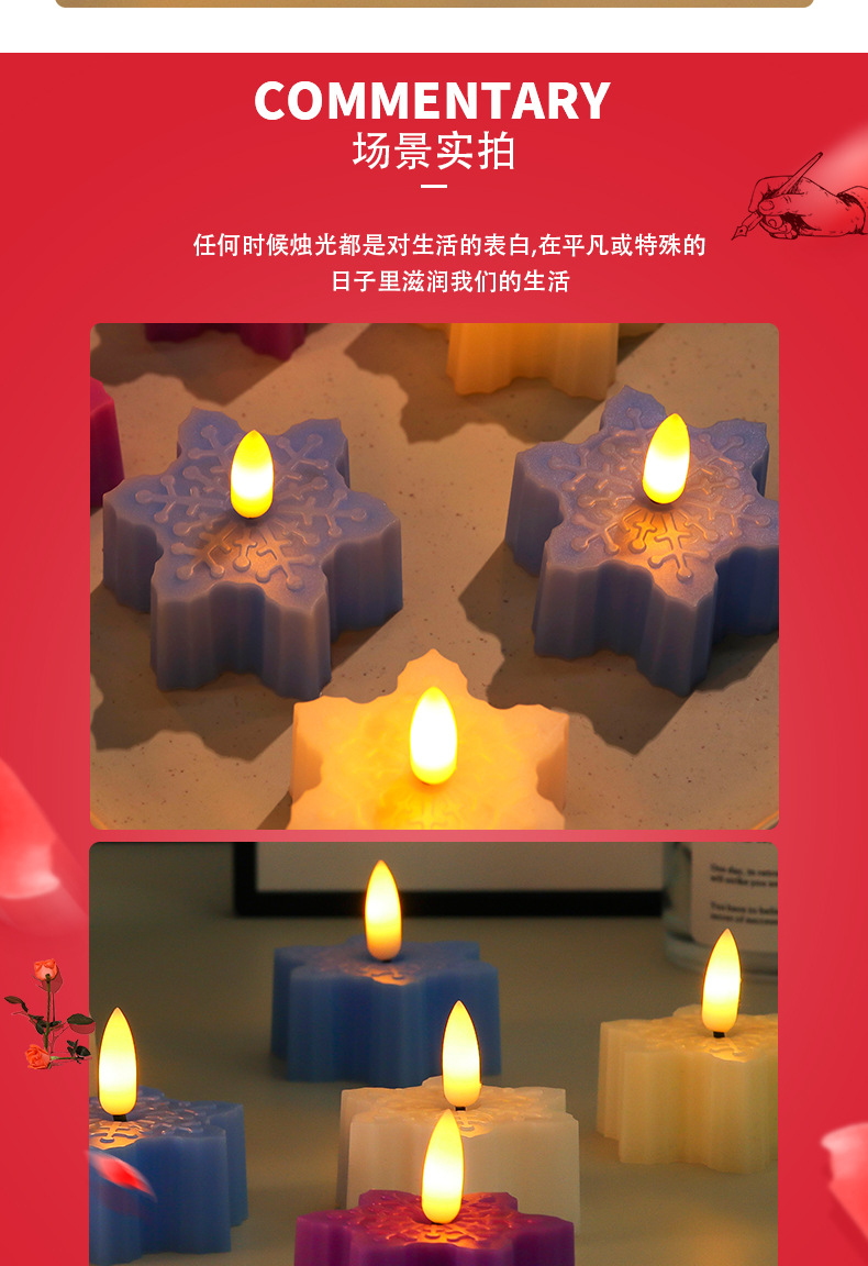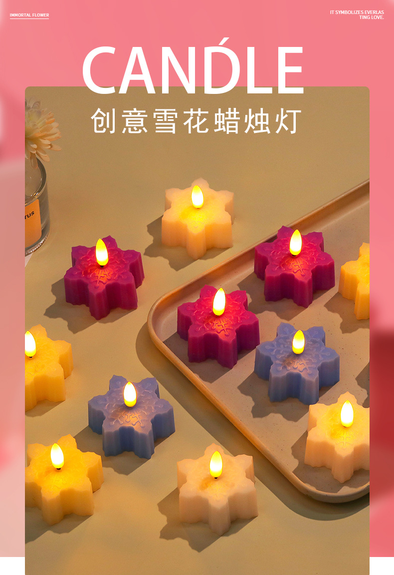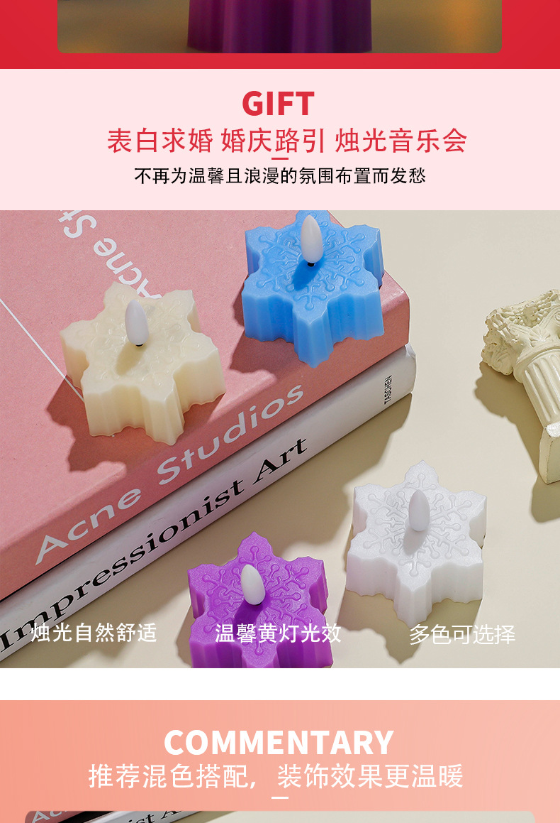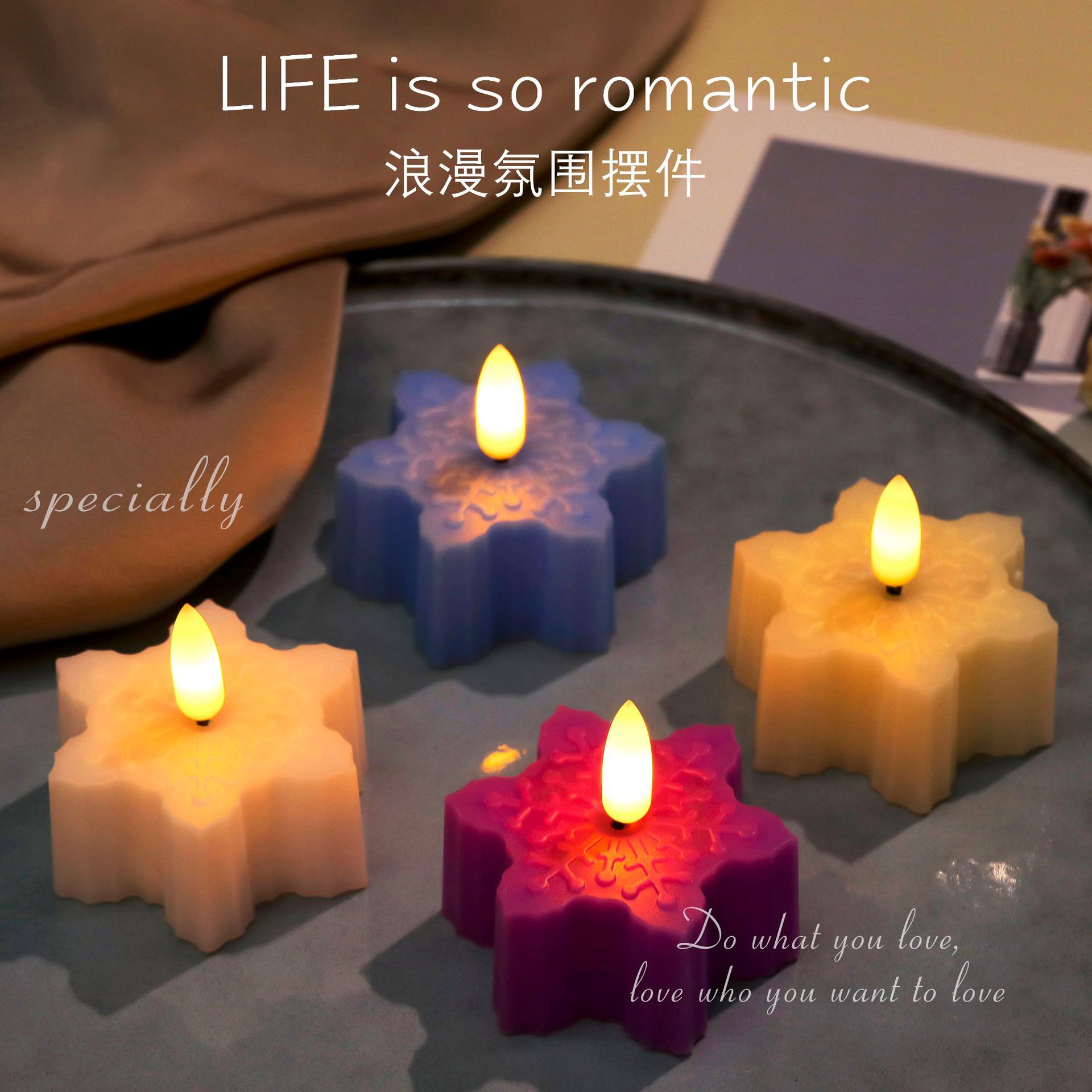 创意雪花蜡烛子弹头LED仿真香薰蜡烛灯小茶蜡圣诞节日气氛装饰灯