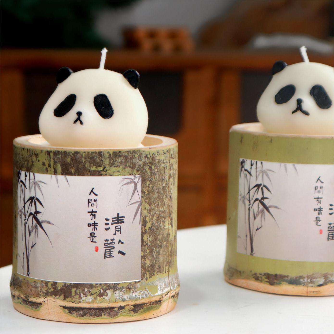 熊猫竹子香薰蜡烛竹筒香氛室内大豆蜡礼物伴手礼