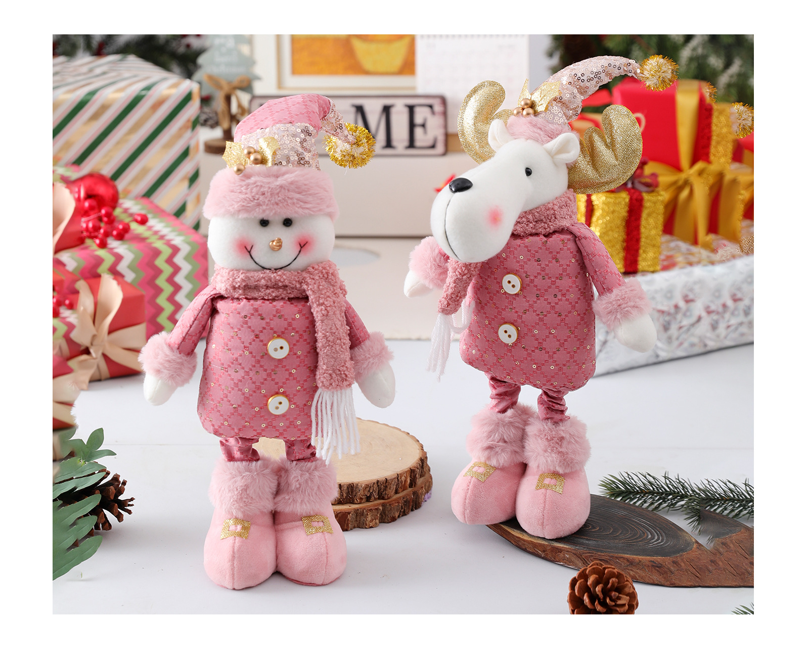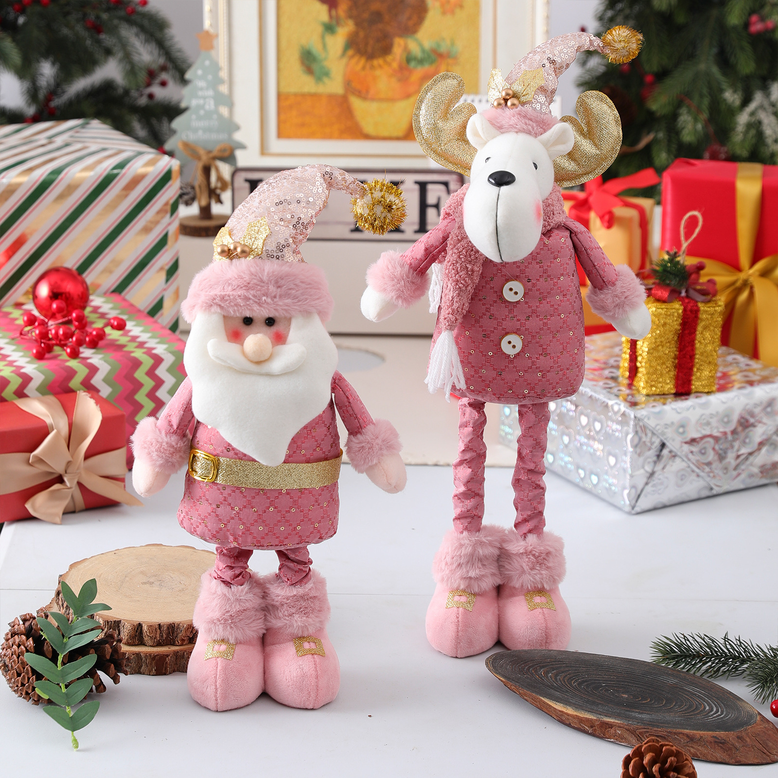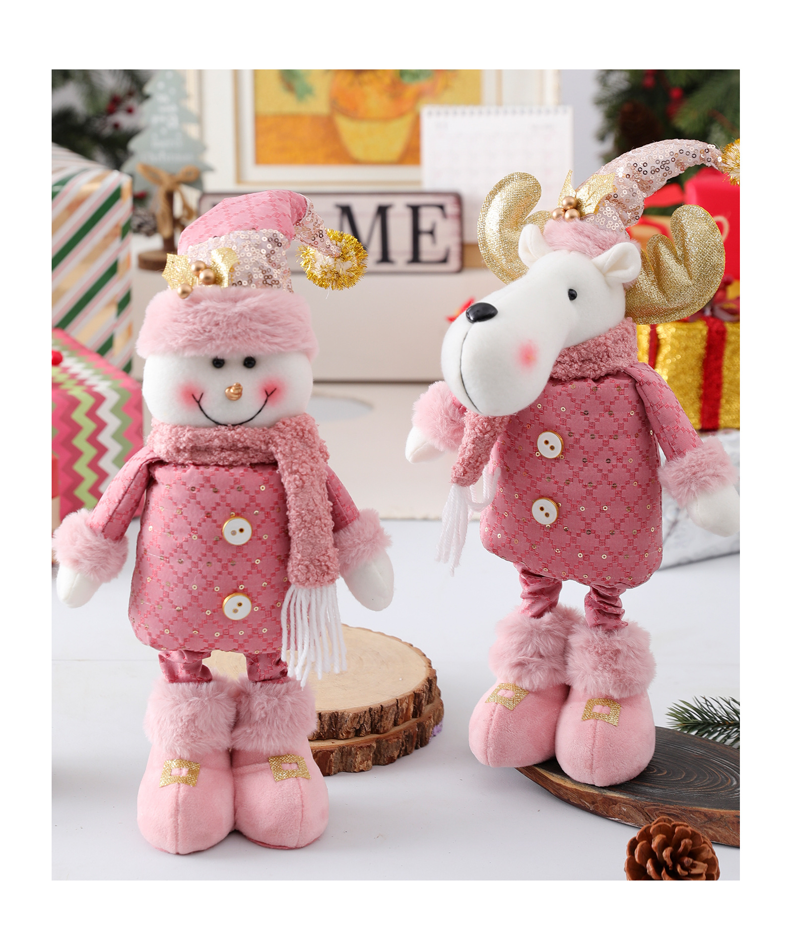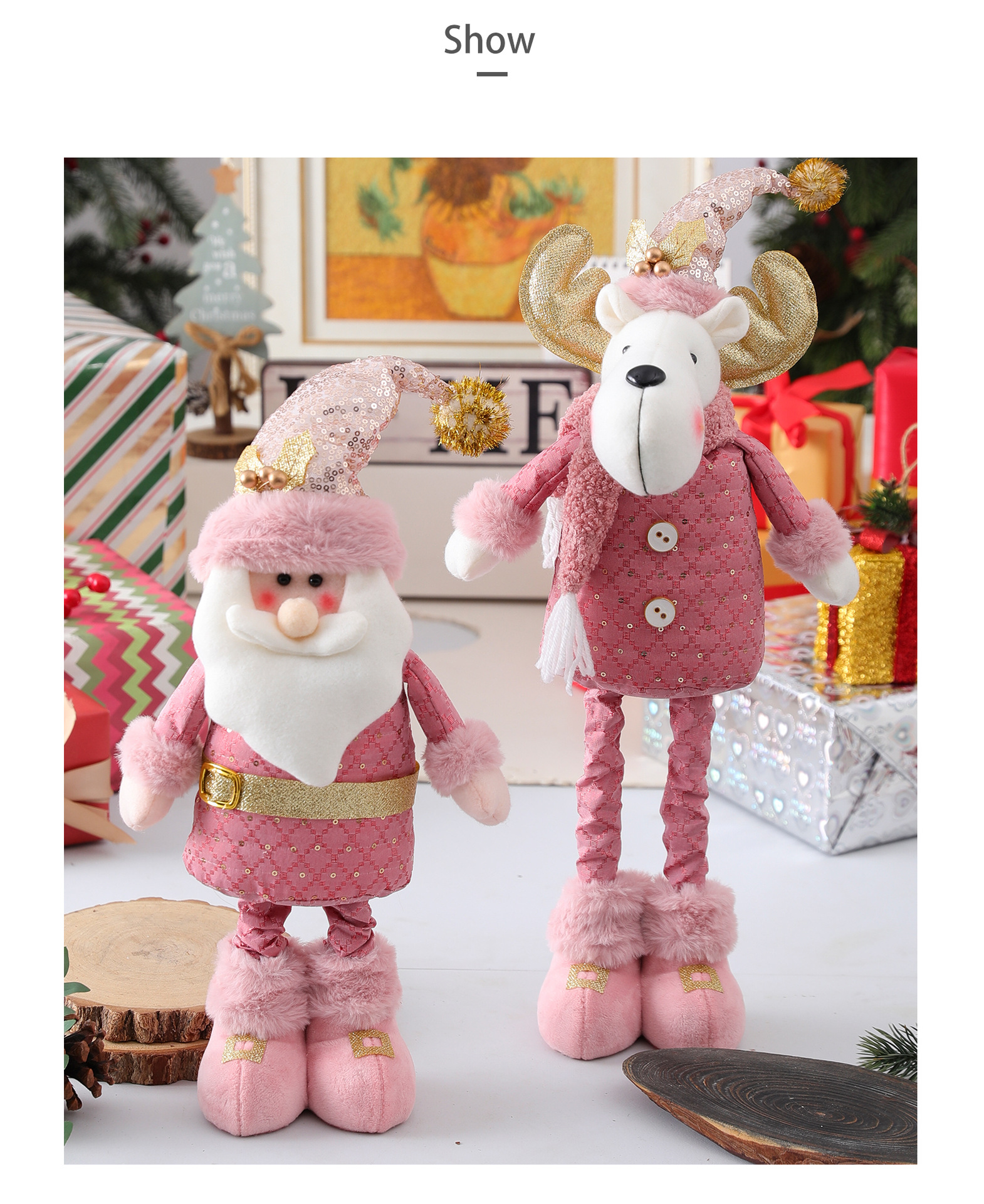跨境圣诞新品粉色伸缩长腿圣诞主题雪人老人麋鹿公仔玩具橱窗摆件